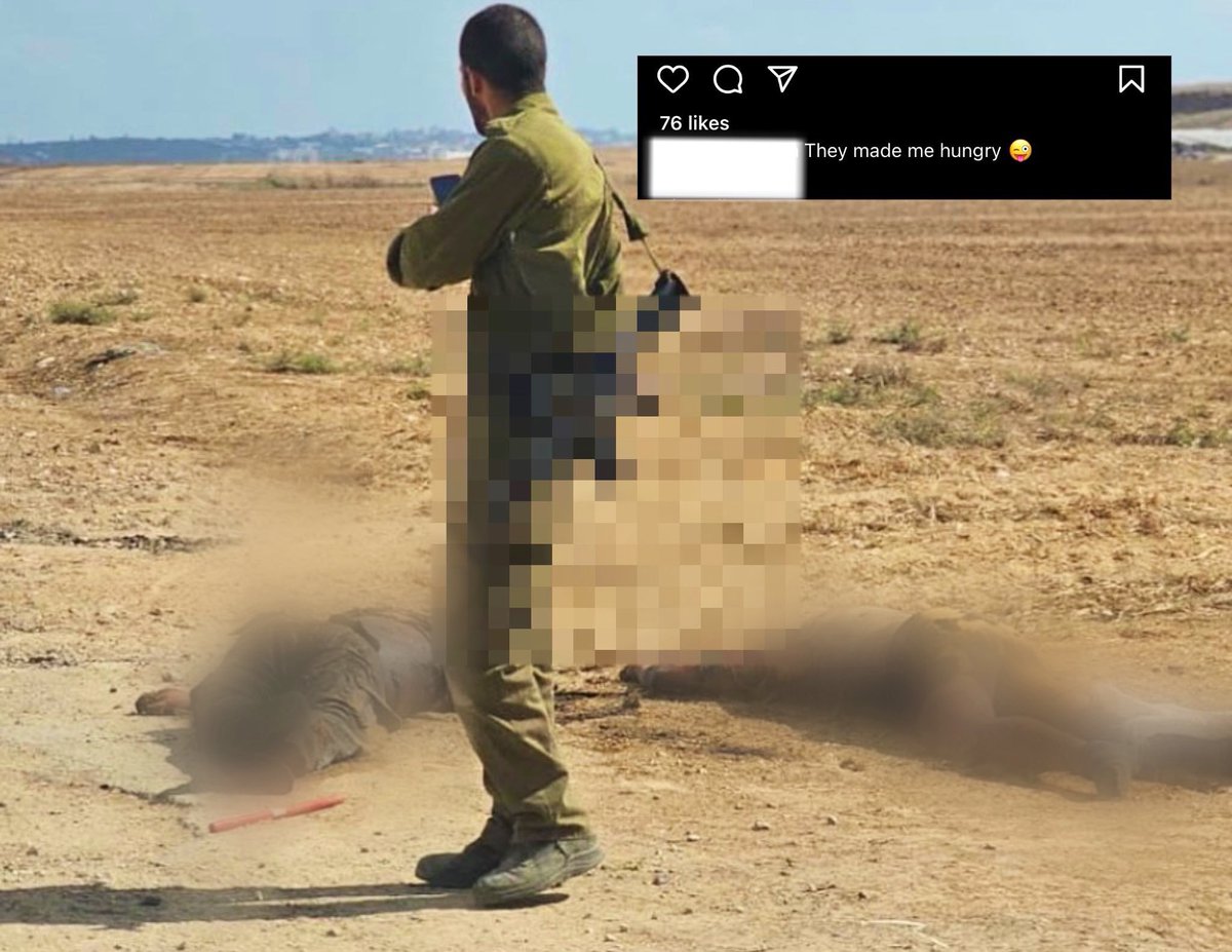 @TalulaSha Another Israeli soldier publishes a picture showing him killing apparently 2 unarmed Palestinians and commenting “They made me hungry” months ago (13/25) https://t.co/fuY6L2bBoZ