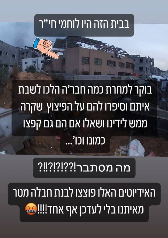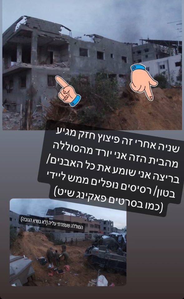 All videos were gathered after monitoring Israeli soldiers' public social media posts. The Hebrew translations were provided by @TalulaSha, who is a must follow. Israeli soldiers blowing up a public institution in Khan Younis several weeks ago (2/25). https://t.co/fived4Jei4