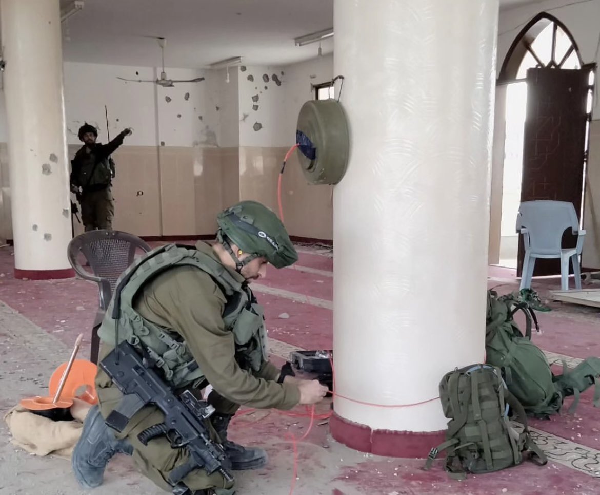 Khan Younis | An Israeli soldier shares a video depicting the deliberate detonation of a mosque, even though it was already severely damaged. A controlled demolition done for entertainment purposes. https://t.co/WkS4cbbzds