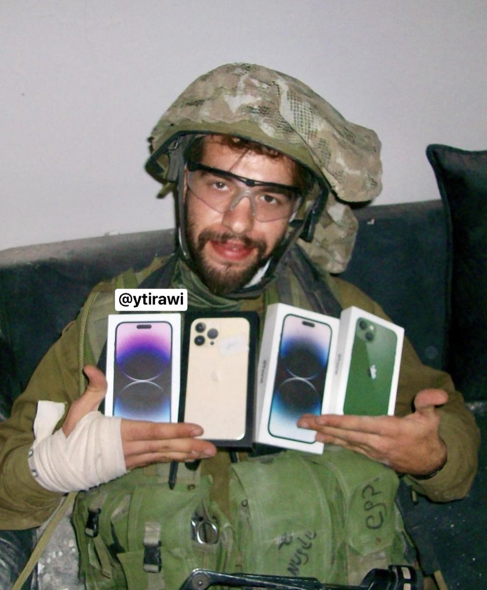 @TalulaSha Looting (+27) Israeli soldier giving away a looted gift belonging to a displaced/killed Palestinian in the city. https://t.co/Cw0RcByO73