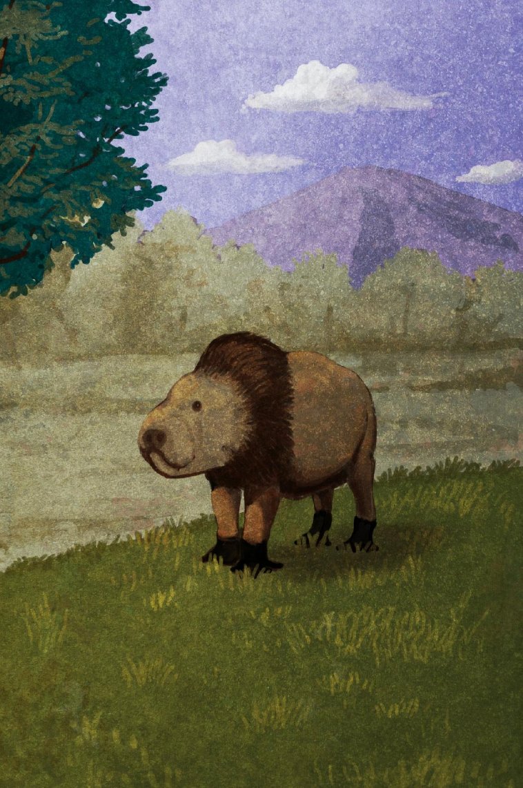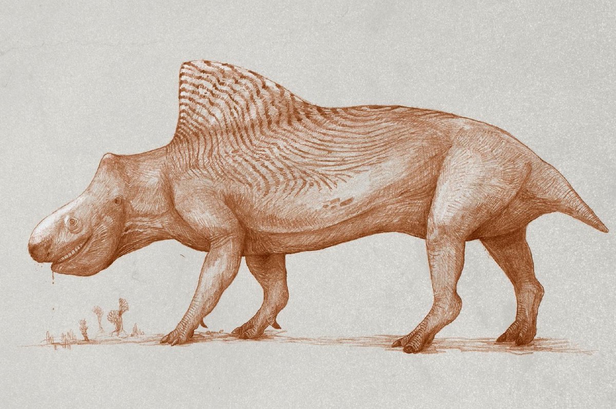 Preemptive note: All of this artwork is from C.M. Koseman, whose book (which is way more extensive than this thread) and some other material is linked at the end of the thread. The last animal was a rhinoceros—the thing with the cooling heat sail! Any idea what this animal is?