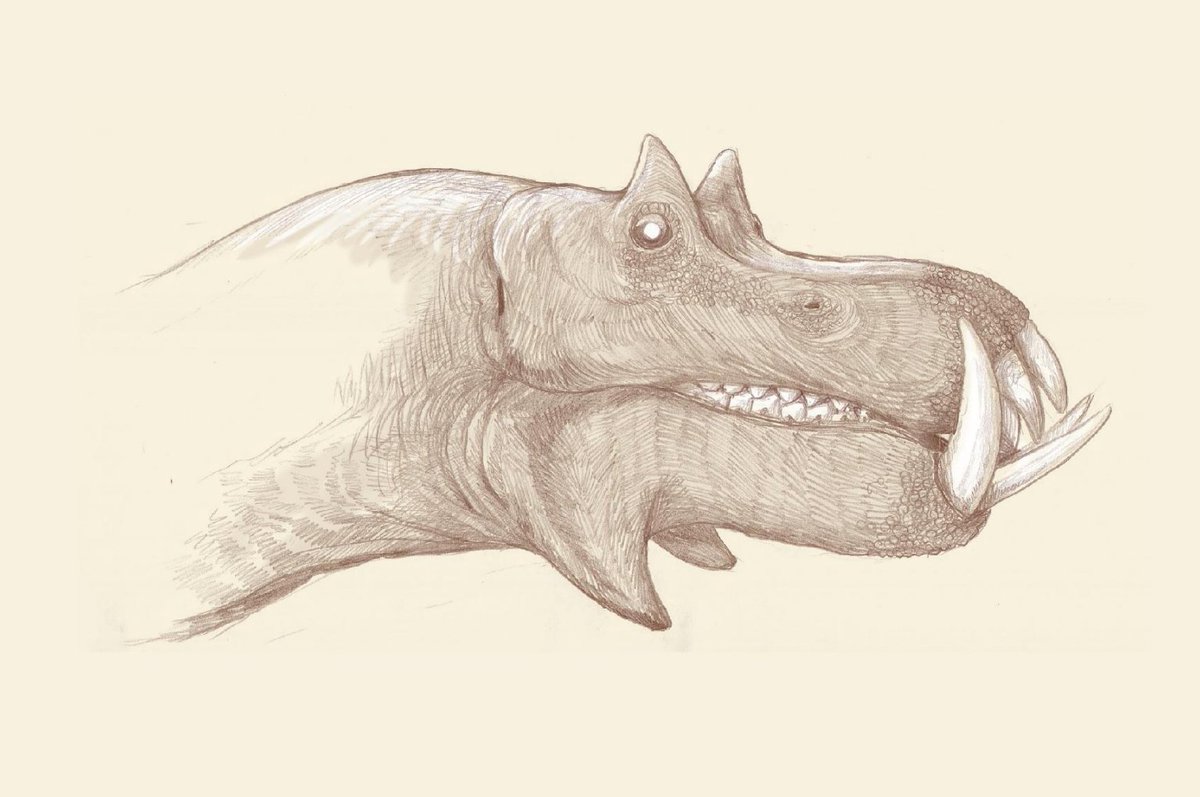 Why that's a bowhead whale of course! And as we know from its skeleton's extensible jaws, it must prey on animals as large as itself! Going back to the land, who are we looking at now?