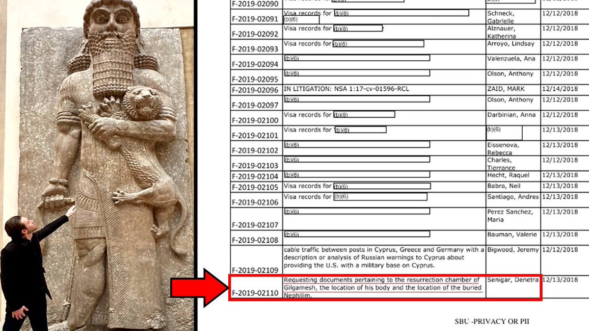 WHY on earth are there Declassified docs on Ancient giants and Biblical Nephilim⁉️ FOIA obtained Hillary Clinton emails: “Pertaining to the resurrection chamber of Gilgamesh, the location of his body and the location of the buried Nephilim” What you must know: - This is a 16.5ft statue of Gilgamesh holding an adult Lion (notice its mane🦁) - Nephilim were said to be a race of ancient Giants described in Genesis, largely destroyed by the Great flood 🚨If Nephilim/Giants were mere religious folklore, why are the most powerful people seeking *highly specific* Classified info on the topic? 🤔