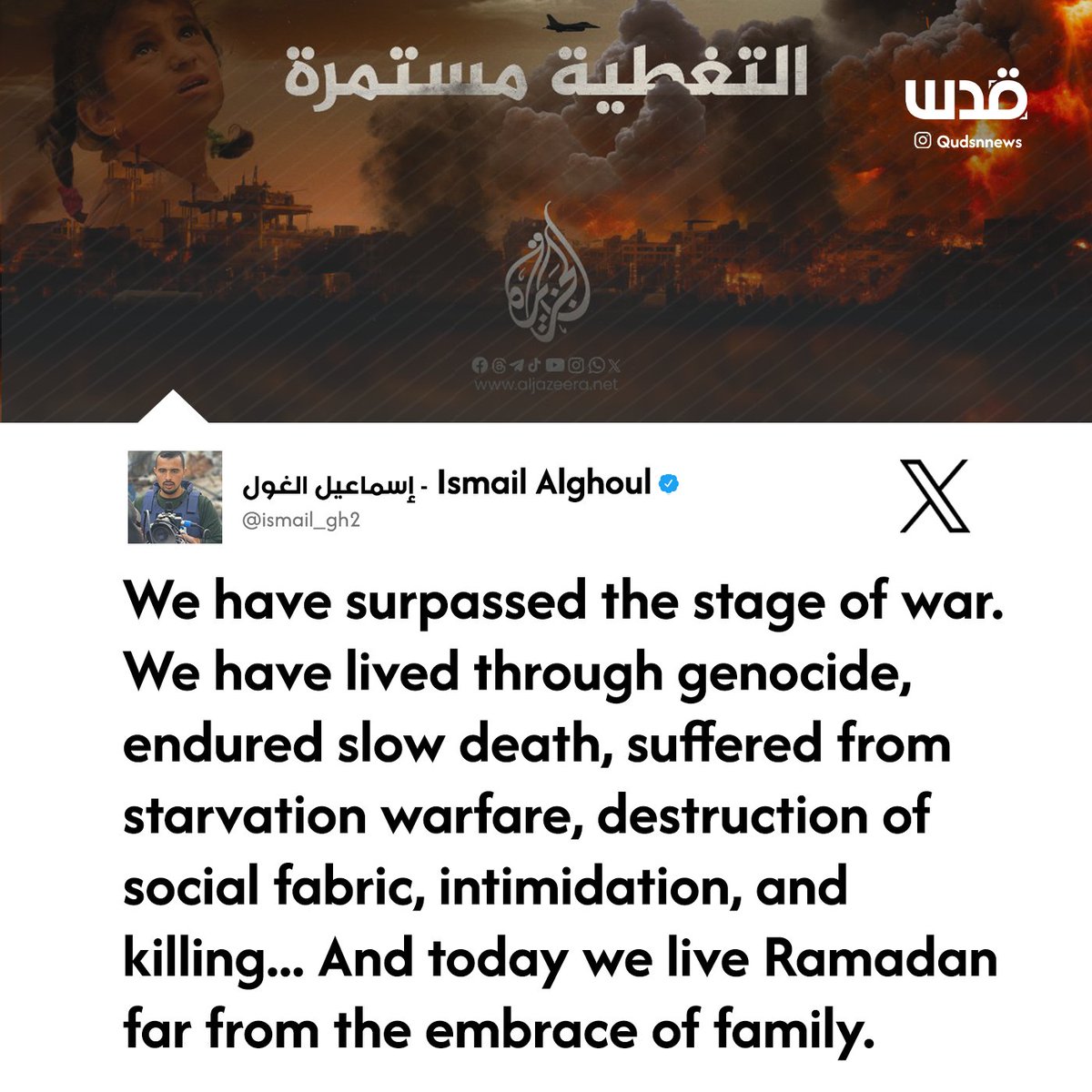 Al Jazeera reporter in Gaza, Ismael Al Ghoul, posted this tweet to his X account last night. This morning, he was beaten up, humiliated and arrested from inside the Al Shifa Hospital in Gaza City, along with dozens of displaced people and medical personnel,by the Israeli army. https://t.co/vnPtFGKgh7