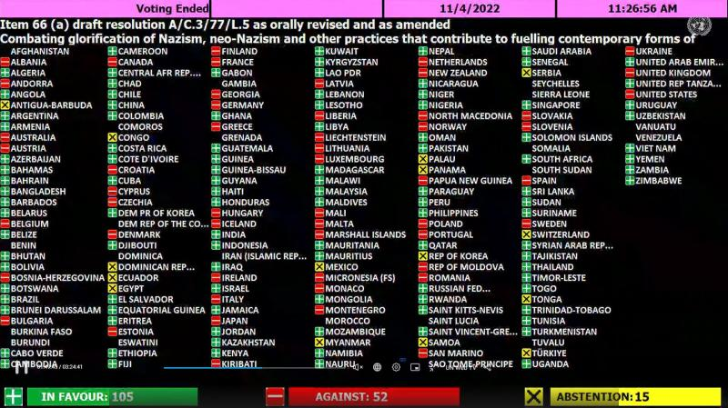 Russia's UN initiative on combatting Nazism and neo-Nazism has easily passed, every single time since it was first introduced. Yet we witness a strange phenomena in the voting record: Canada, the US, Ukraine, and the EU -- all the supposedly anti-fascist liberal democracies -- either abstain or vote against it. The Realpolitik explanation is that the Western russo-hysteric cabal doesn't want to lend Russia any credence to its claims that Ukraine has a neo-Nazi problem. Voting in favor would be seen as validating the claim, and even if Russia is absolutely 100% correct, the cabal can never admit Russia is right about something. Russia must always be regarded as the enemy of the West, for no other reason than just because. The main ramification being that Canada would have to rethink its unquestioning support for Ukraine and that Russia and the separatist regions would be seen as justified in their rejection of the Kiev coup regime. Trudeau on the scandal: "I think it's going to be really important that all of us push back against Russian propaganda, Russian disinformation, and continue our steadfast and unequivocal support for Ukraine." Canadian Parliament humiliated itself on the world stage by enthusiastically and unwittingly celebrating a Ukrainian Nazi, and the only response the slimy weasel Trudeau can come up with is to deflect blame to Russia, a party that had absolutely nothing to do with the scandal. Yes, of course Russia is going to make political hay out of the occasion and has every right to. Canada repeatedly refuses to condemn the glorification of Nazism and neo-Nazism... AND THEN GLORIFIES AN ACTUAL FUCKING NAZI AT THE HIGHEST LEVEL OF GOVT.
