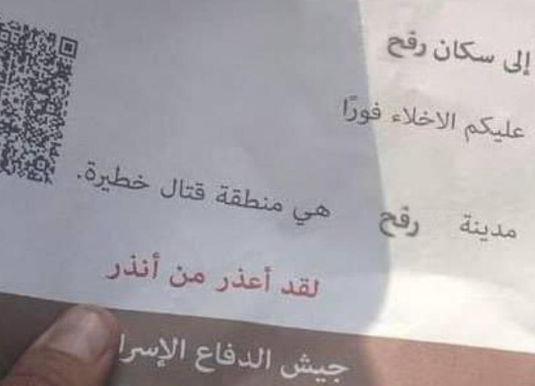 Breaking news Israeli occupation army airdrops flyers on #Rafah warning people to leave, declaring the city a dangerous war zone! It might be the first stage of ground invasion! #RafahUnderAttack https://t.co/AIjCU5C5pX