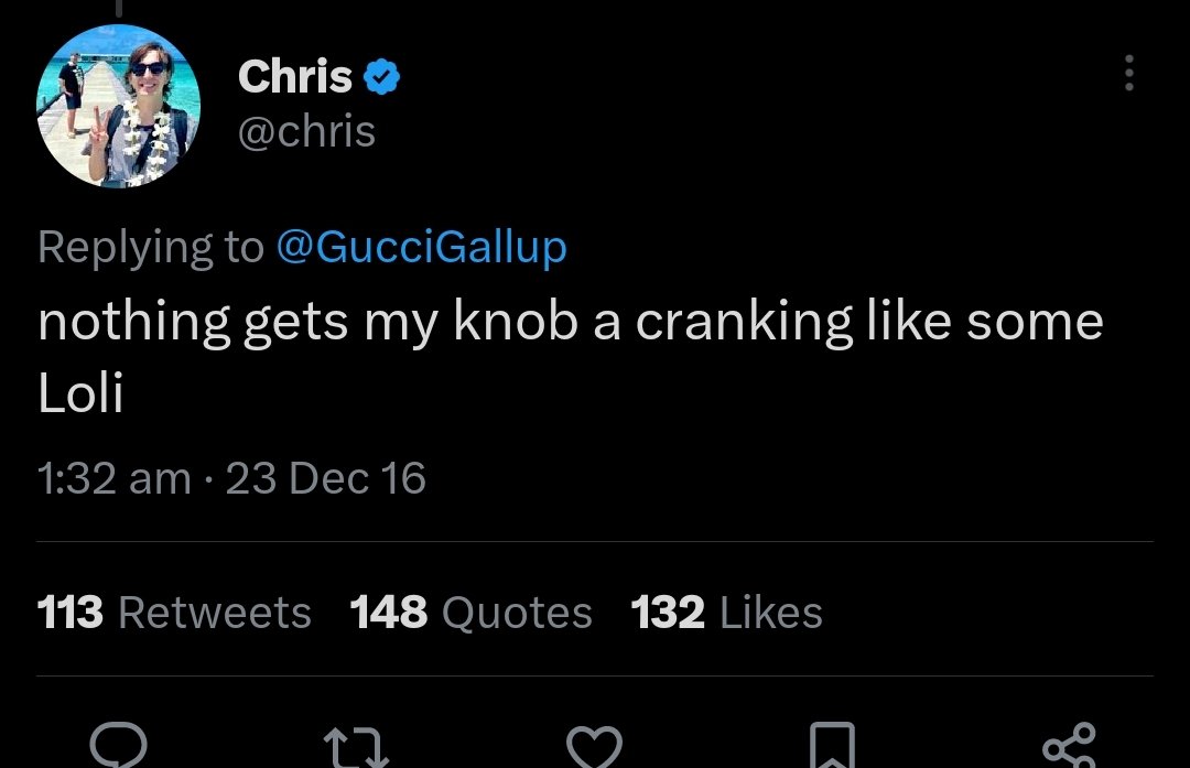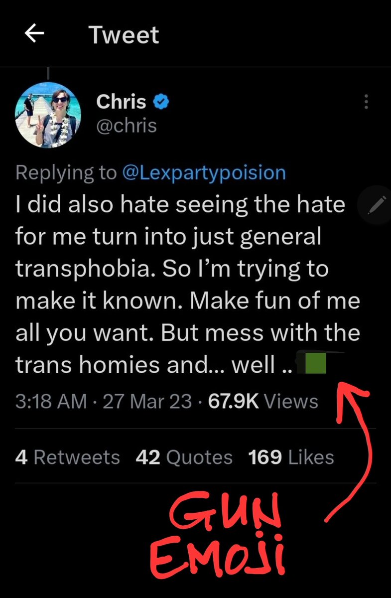 The more controversy that surrounded Chris and his recent deletion of his tweet admitting that he likes "Loli" caused me to look into him. What I found was disturbing. It starts with this now-deleted tweet wherein Chris threatens to shoot transphobes. Edited so I don't get banned