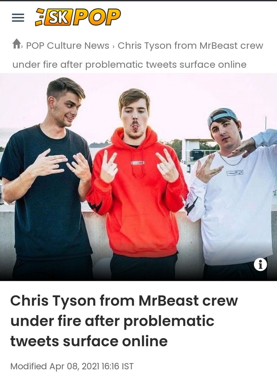 THREAD & CONTENT WARNING: The exposure of Chris Tyson, a.k.a. Mr. Beast's sidekick and current cast member. Mr. Beast an incredibly successful YouTuber with over 145M subscribers...whose audience consists of many minors. His channel focuses a lot on philanthropy and challenges.