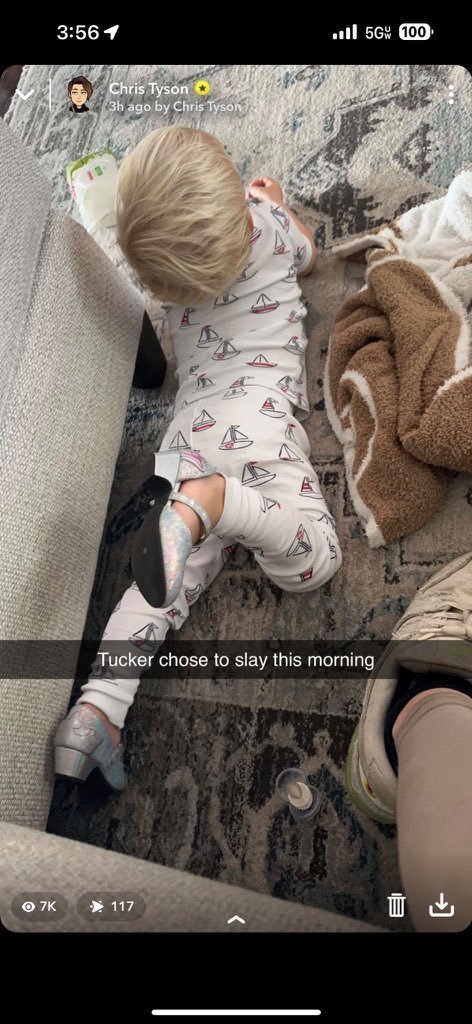 (sensitive content) This is a publicly available Snapchat Chris made of his son, dressed in heels. His son, again, was born in 2020, making him three years old. And Chris is already putting him in heels, claiming he's "slaying". Also, see 2nd picture...