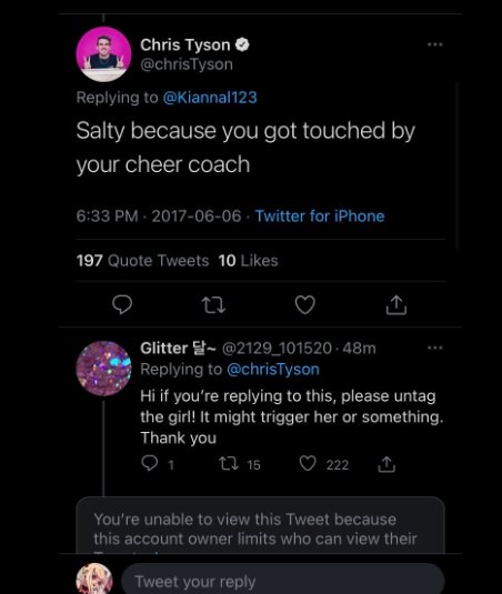 (sensitive content) More controversial tweets from Chris, archived from when he went by @ ChrisTyson on Twitter, before he changed it to just @ chris. Same person.