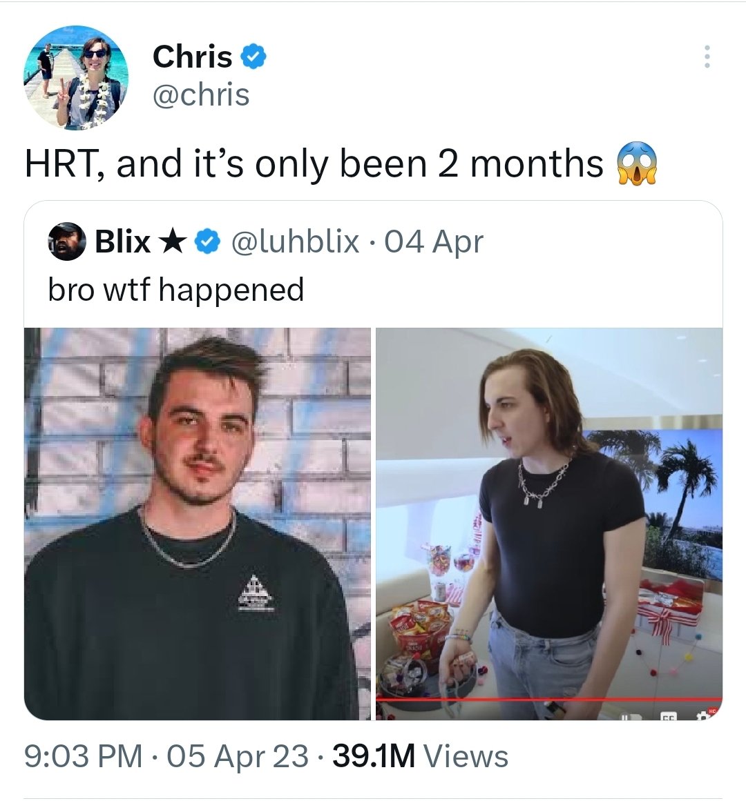 Recently, Chris has opened up about being trans and being on HRT and now presenting feminine...or something like that. Success there is debatable.