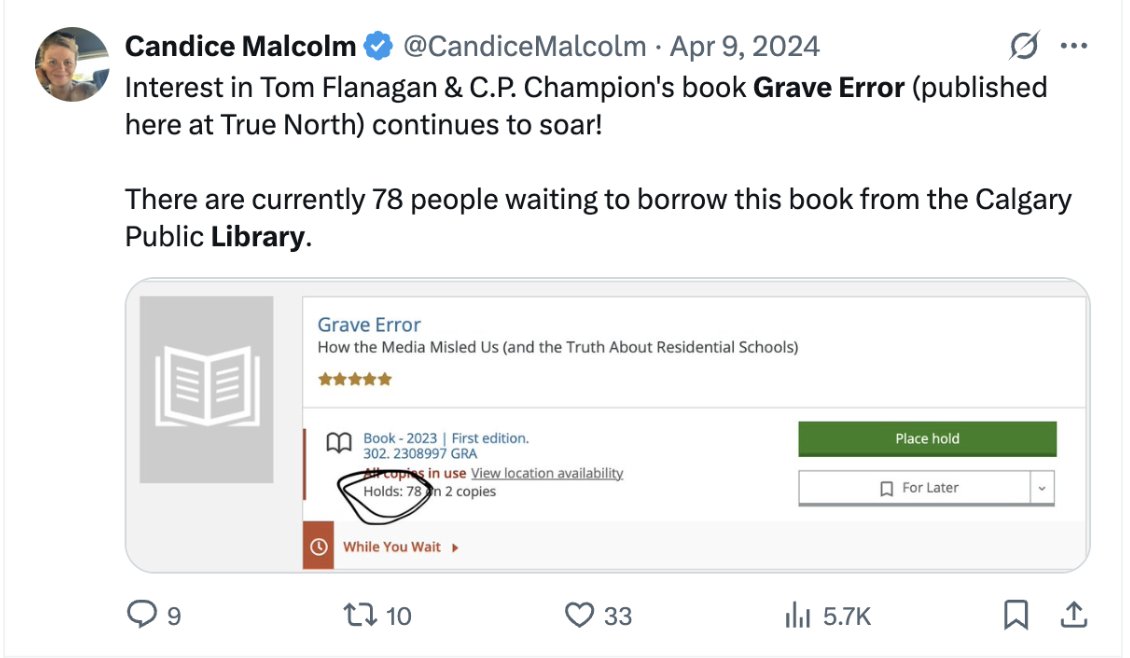 Grave Error was edited by Dr. C.P. Champion & Dr. Tom Flanagan. It quickly became a Canadian best-seller, selling tens of thousands of copies despite being completely ignored by the legacy media. Libraries across the country had months-long waiting lists to read it. 5/