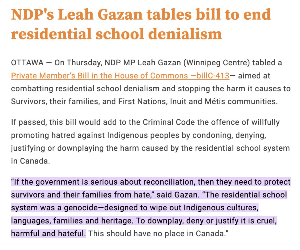 The TRUTH was finally getting out there. But not everyone was happy about it. Woke activists labeled the book “hate literature” & “Residential School denialism” The NDP then introduced a bill to make “denialism” a crime in Canada, specifically using Grave Error as an example 6/