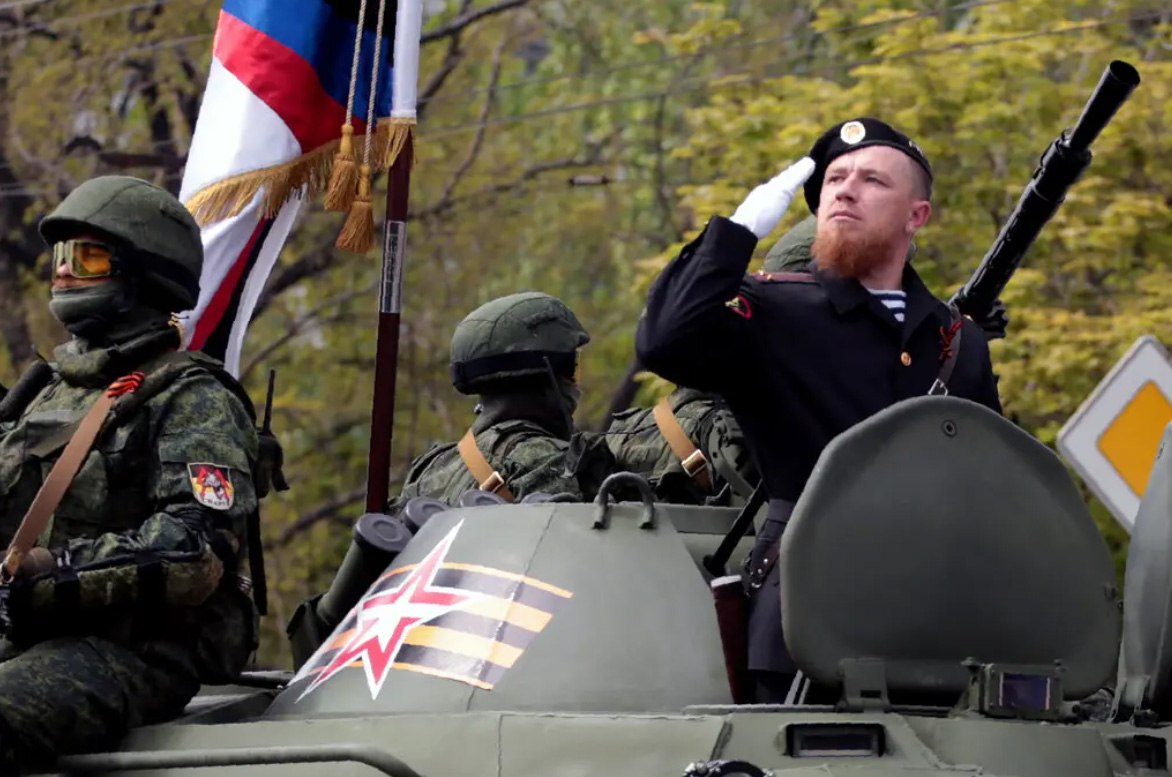 The Pro-Russian rebel commander Arseny Pavlov, known as "Motorola" saluting while taking part in a military parade in Donetsk in eastern Ukriane in 2016.