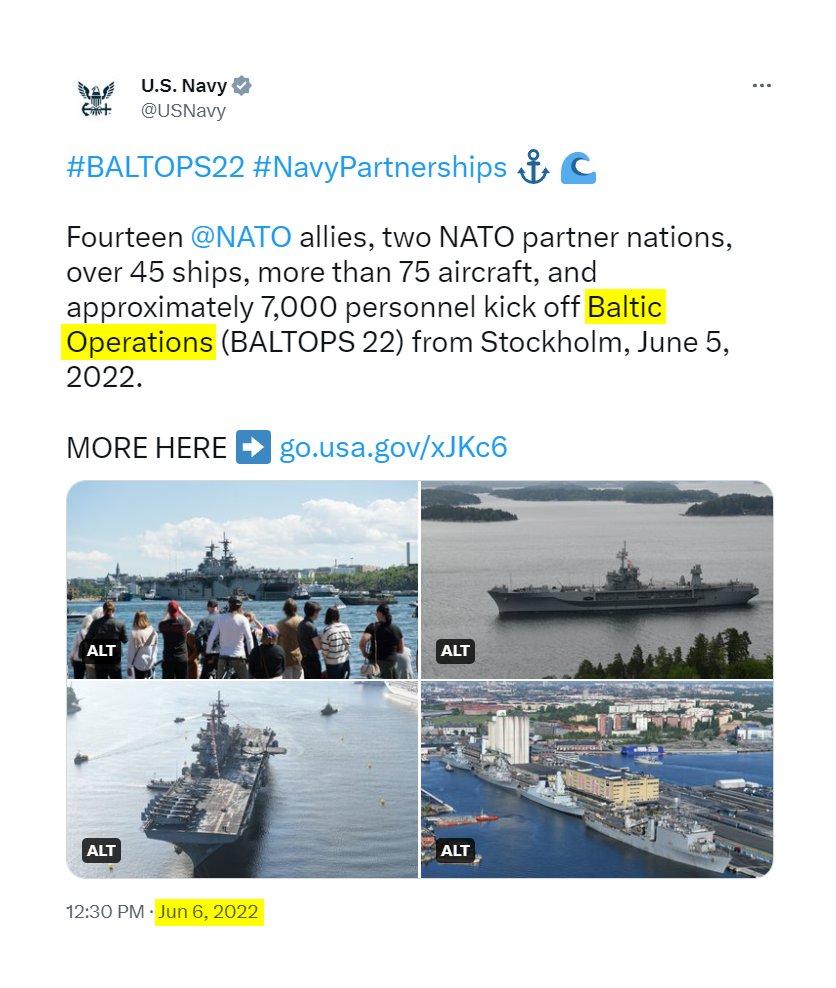 9) The US Navy posted pictures of themselves planting "mock explosives" in the Baltic Sea where the pipelines would explode three months later. But don't worry, it was a "training exercise." https://www.navy.mil/Press-Office/News-Stories/Article/3060311/baltops-22-a-perfect-opportunity-for-research-and-testing-new-technology/