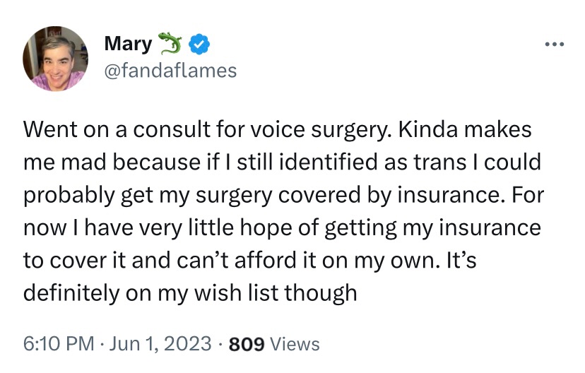“I realise now that medical transition was sold to me as a hardware fix for software issues.” Honestly that’s the best way of putting it that I’ve EVER SEEN. This gay man, with internalised h°m°phobia and a ton of undiagnosed mental health conditions, was missold transition and now is in constant pain due to osteoporosis and scoliosis caused by transition, and has non functional gen1talia. He’s a medical patient for life. He is a trans regretter, too far along in the process to detransition - much like @NotScottNewgent.