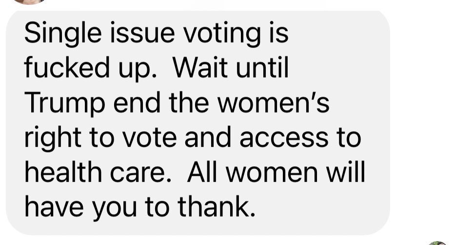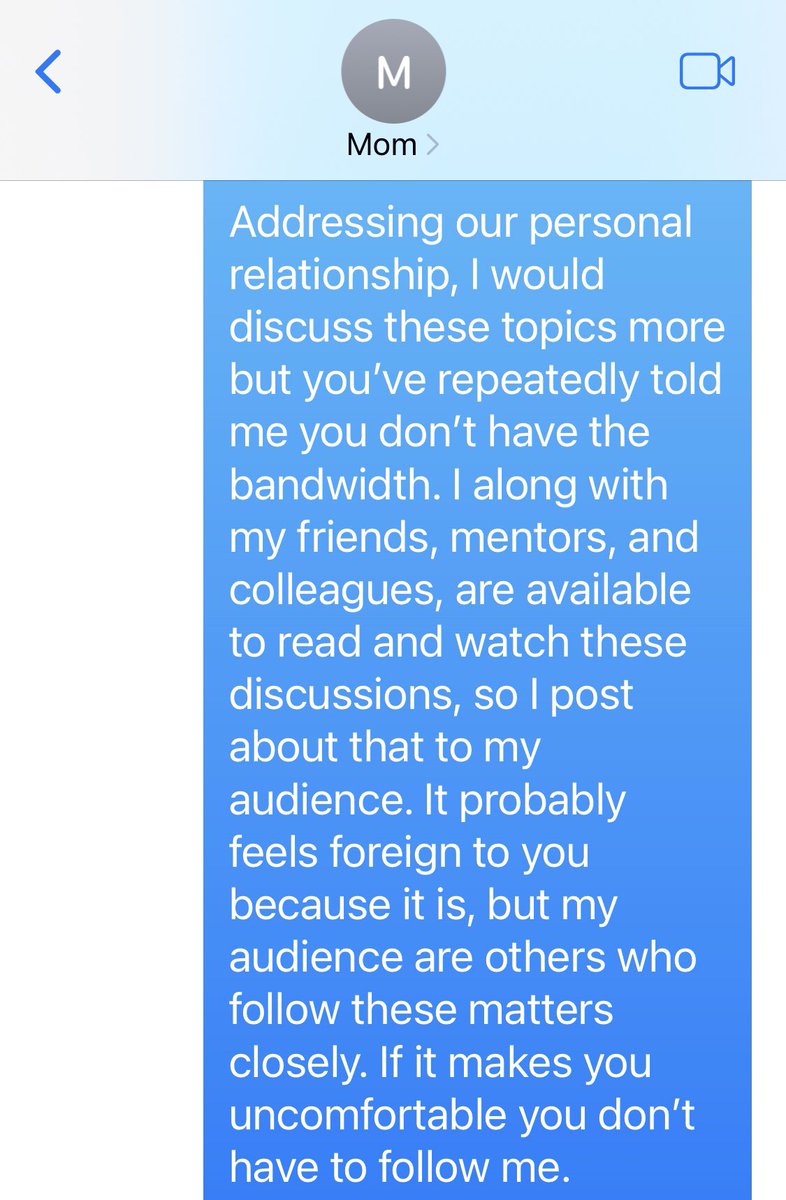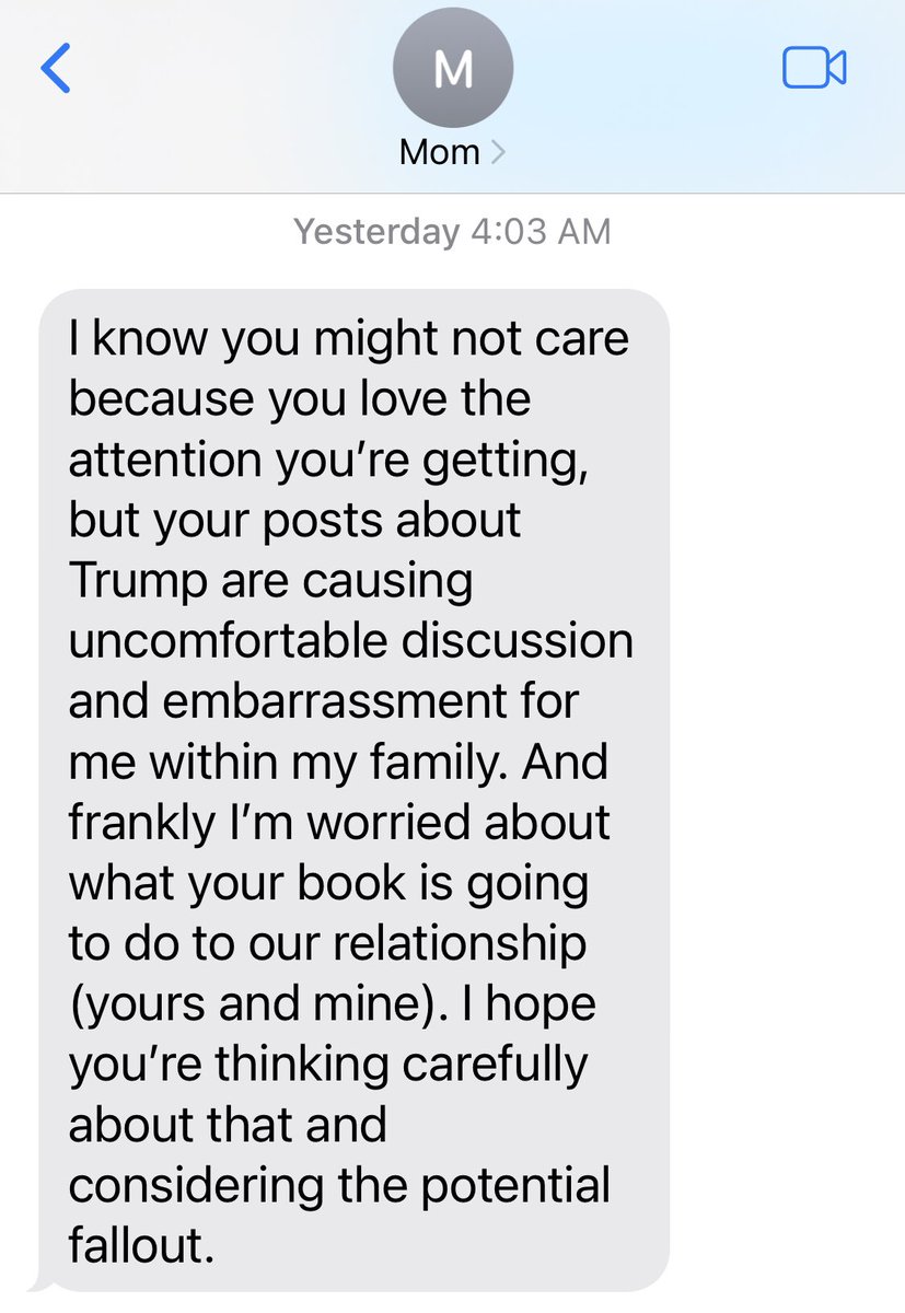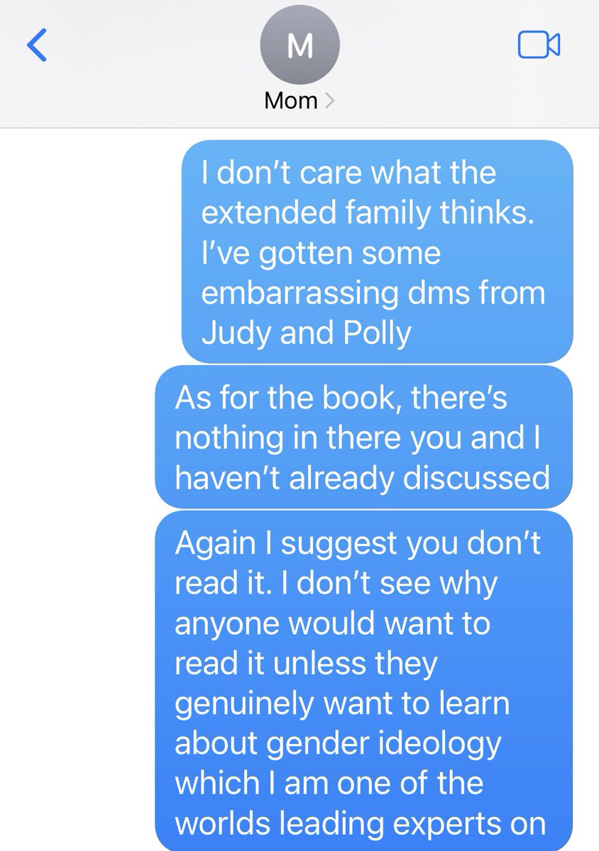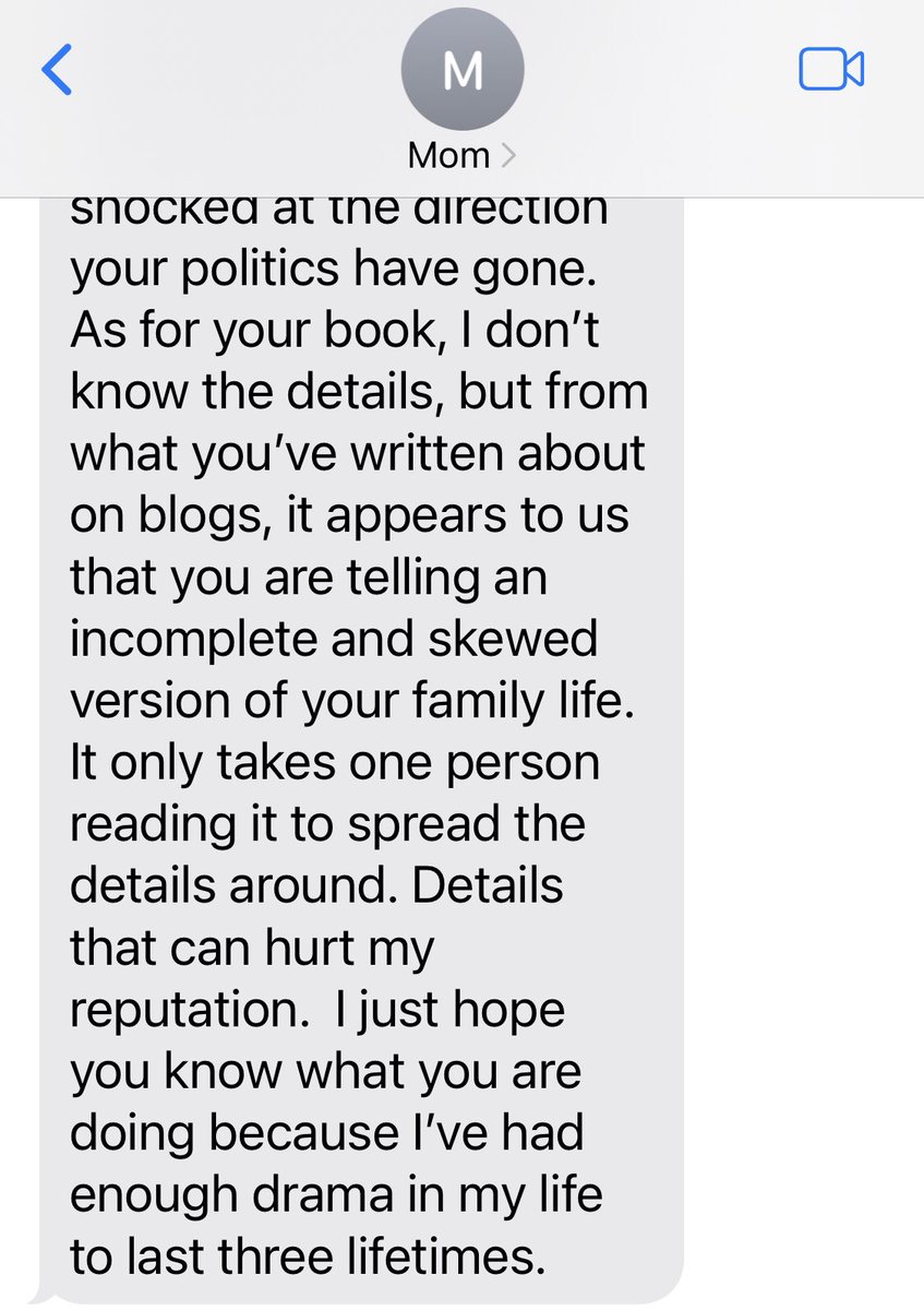 🧵I’m a detransitioner endorsing Trump. My family who supported my transition (due to fear of suicide) is horrified. I am posting this frustrating exchange with my mom to model setting and accepting boundaries for others in similar situations: