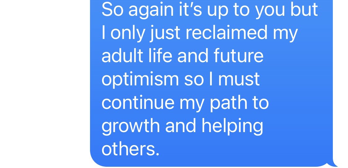 How does this exchange make me feel? Disappointed. It would be nice if my mom was available to discuss emotional and intellectual topics so I felt she understood me in fundamental ways. It is sad that she is in survival mode and I wish she was feeling better in her life. I also feel politically frustrated with her views, as it feels she hasn’t internalized my work. Overall, sadness and disappointment are part of close relationships. We resolved a conflict that had many pieces and that increases relational confidence and emotion regulation for future interactions. I hope this model was helpful to others dealing with conflicts. End 🧵