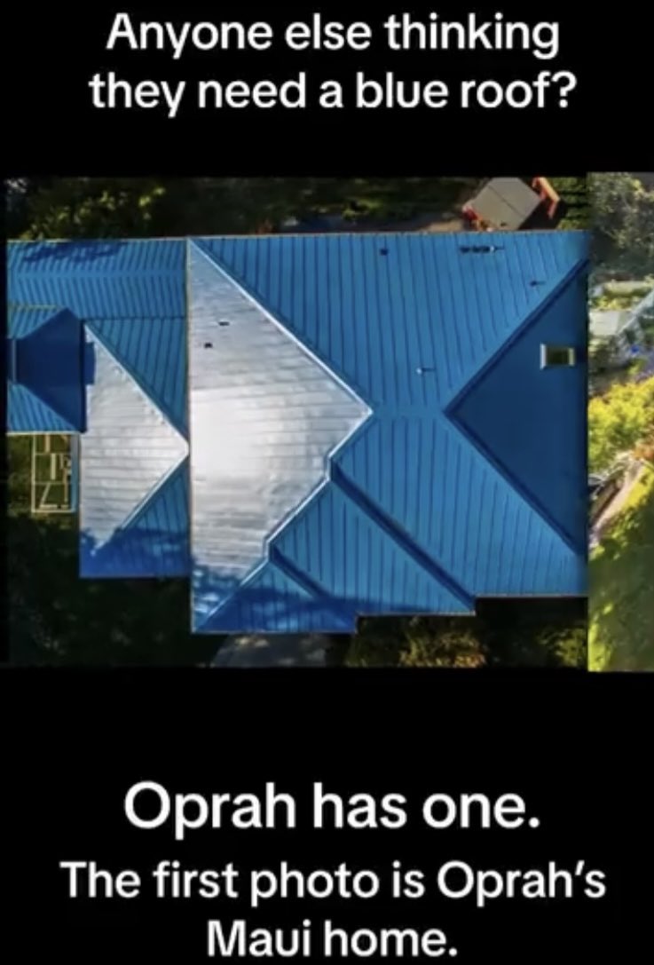 That shade of blue didn’t burn up in the Maui fires. Oprah and other billionaires had blue roofs and their homes was untouched by the fires. Did Oprah know that a Direct Energy Weapon could be programed to protect everything with that shade of blue? https://t.co/4xoNFSOGdo