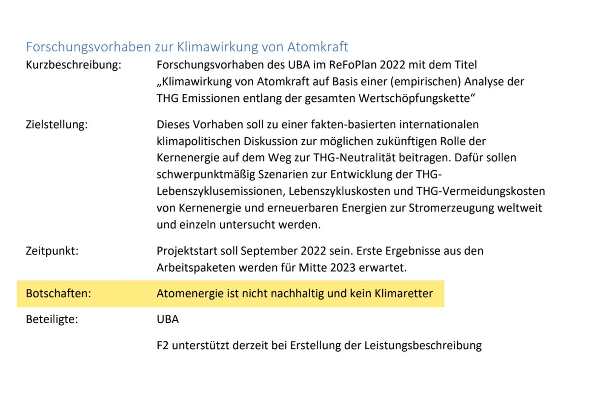 Die Akteure machen daraus gar keinen Hehl. Forschung über Kernenergie, so @BMUV schon 2021 unter SPD-Führung in seinem Strategiepapier „Vollendung des Atomausstiegs“, soll vor allem der Munitionierung des globalen Kampfes gegen Kernenergie dienen. https://www.bmuv.de/download/12-punkte-fuer-die-vollendung-des-atomausstiegs. 2/6