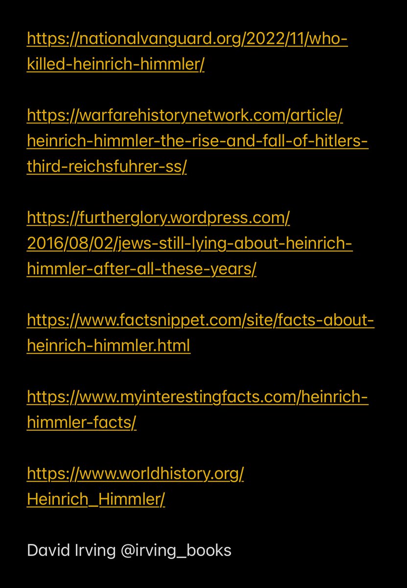🧵11/15 ▪️ “According to the British and a member of the Jewish Congress Himmler attempted to trade the lives of thousands of concentration camp inmates for guarantees he would be spared, while also stating that the vast majority of inmates who died were killed by typhus and that the inmates of his concentrations camps had been treated humanely.” ▪️ “The official report is that he committed suicide on 23 May 1945 by taking a cyanide capsule 💊. The mysterious aspects of Himmler’s ‘suicide’ have been discussed elsewhere, notably by the British historian David Irving @irving_books who published the first volume of a definitive biography, True Himmler.” ▪️”Official records concerning Himmler’s demise are remarkably sketchy, considering that this was the most important national-socialist leader to die in British hands.” ▪️”Himmler was swiftly buried in a secret grave and we have no autopsy report or other detailed official explanation of his death.” 🎥Himmler playing snowballs. Germany, 1940