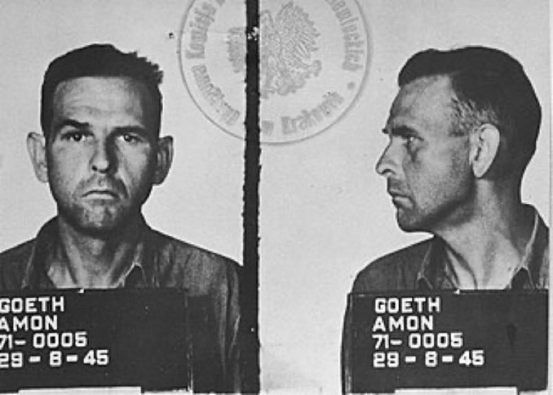 🧵8/14 ▪️”One of the most popular German soldiers arrested was “Amon Goth- The Butcher of Plaszow” made popular by the Spielberg’ fictional movie (see below) by the never proven claim of shooting prisoners from his balcony.” ▪️“On 13 September 1944, Amon Göth was relieved of his position and charged by the German SS with theft of Jewish property, failure to provide adequate food to the prisoners under his charge, violation of concentration camp regulations regarding the treatment and punishment of prisoners, and allowing unauthorised access to camp personnel records by prisoners and non-commissioned officers.”