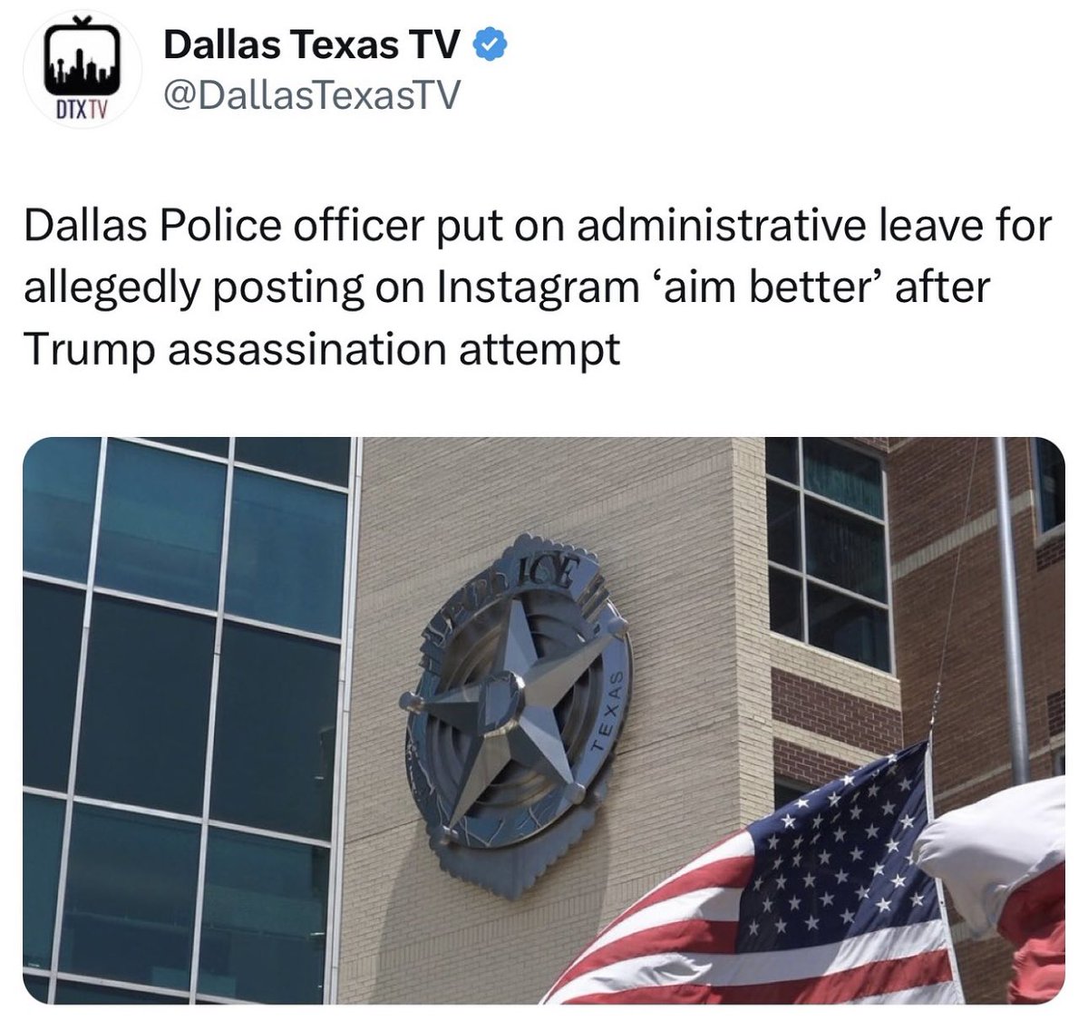 A Dallas police office was put on leave for posting “aim better” https://t.co/B9uAwEdVzu