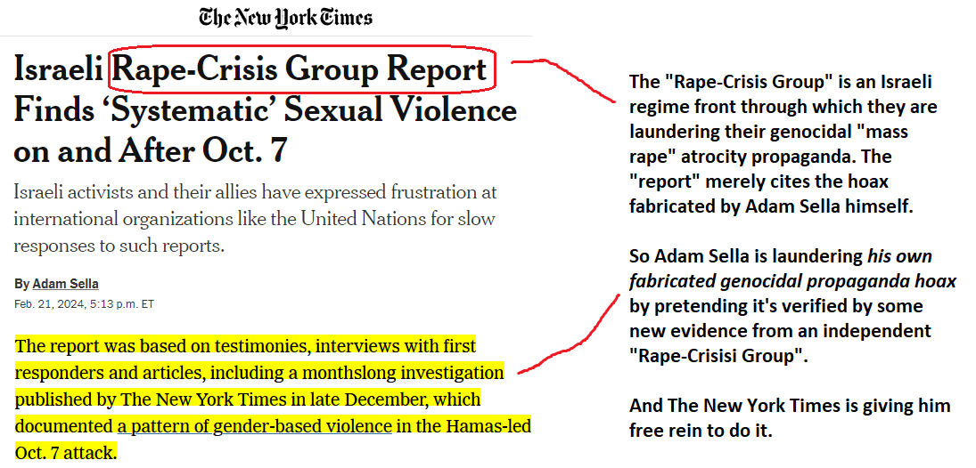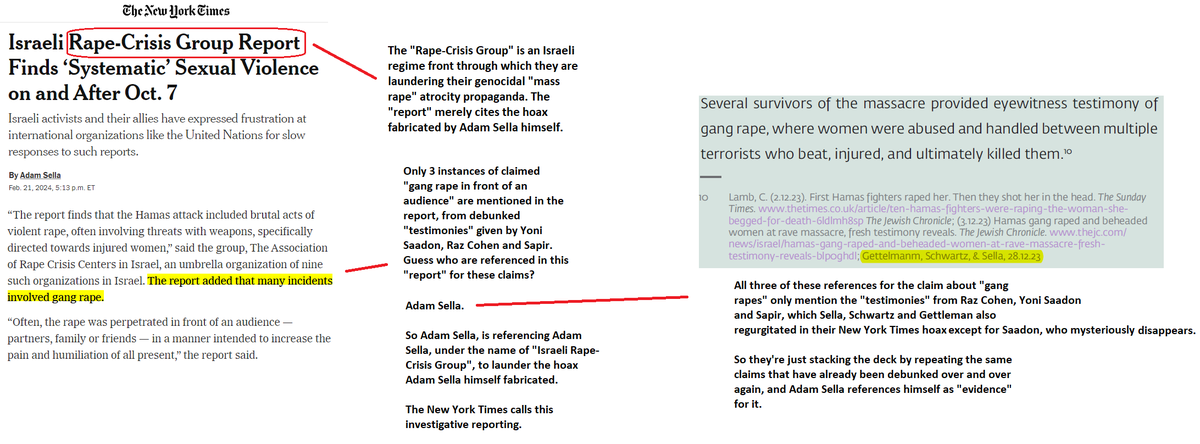 just last week the New York Times allowed Adam Sella, one of the main instigators of this widely debunked atrocity propaganda, to once again launder his own fabrication via an Israeli regime front that cites his own hoax as its "evidence". Just what the fuck is the NYT doing here https://t.co/TfeGLH5oGb