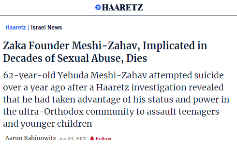 for those wondering why I call Zaka a pedophile rape cult, it's because it was literally founded and led by a pedophile mass rapist aided and abetted by its cult members, who since October 7 were suddenly transformed into Holy Saints by the New York Times https://t.co/FxNmwROscW