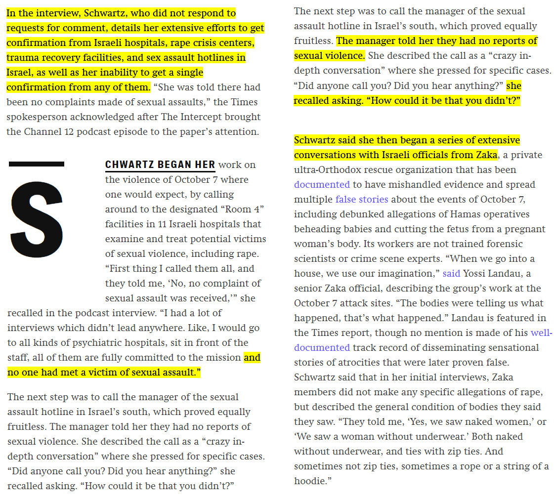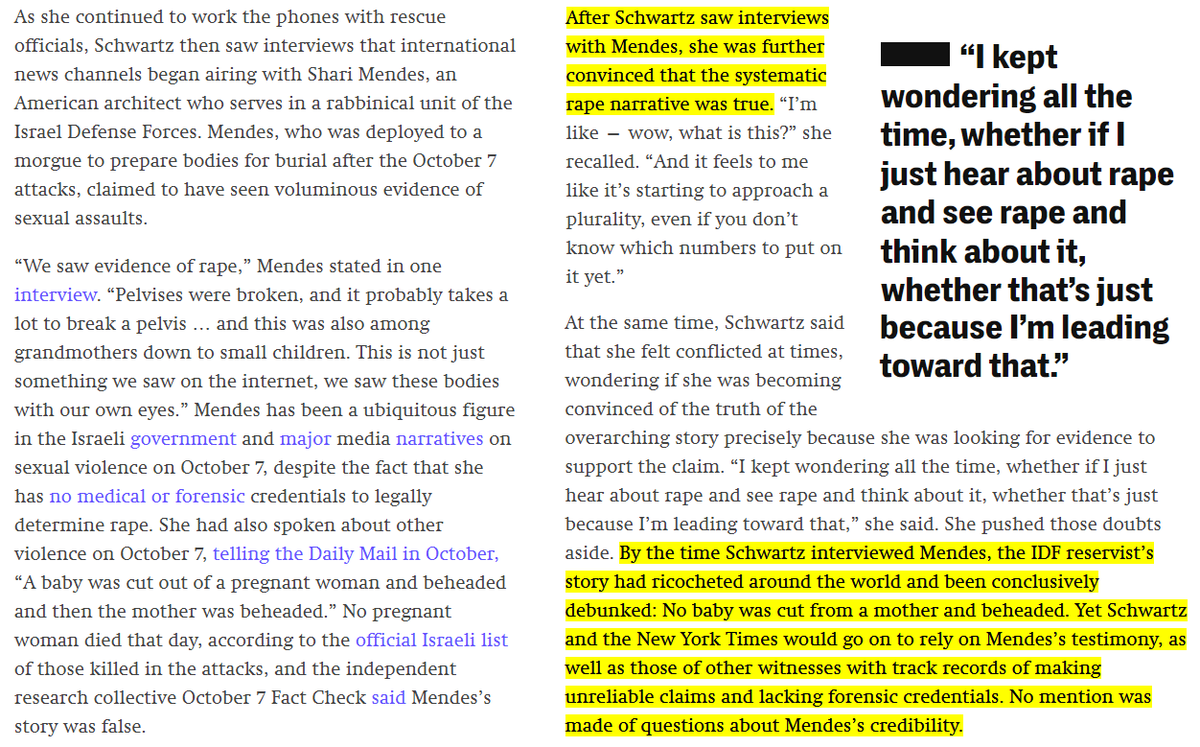again, all of this was already exposed by outlets like Mondoweiss, Electronic Intifada, Grayzone and people like myself, as we are smeared by Zionist propagandists who fabricated and spread the "mass rape" hoax. Now prestige media is starting to admit it https://t.co/9VmQPfyc3k