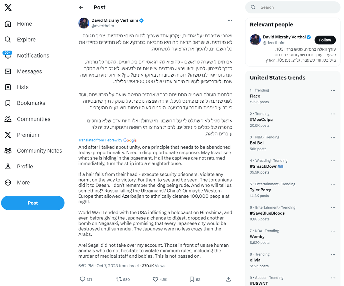 more from the same Zionist admitting the systematic torture and mass rape of innocent Palestinians, and also saying he knew about it for many months but is only publicly stating it now because they're desperately trying to do a PR laundering attempt: https://t.co/YrytCQCiUe https://t.co/naaiIgZRSi