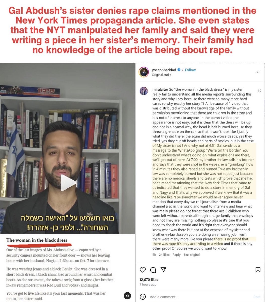 this is what Sheryl Sandberg's genocidal "mass rape" atrocity propaganda hoax documentary will consist of. They desperately needed an actual allegation from a direct witness and they got Amit Soussana, which directly contradicts the claims of the "mass rape" hoax. There's nothing