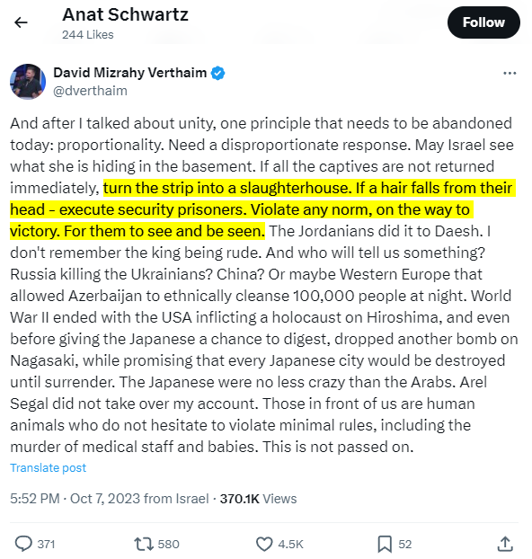 BREAKING: After being exposed as a genocidal maniac who wants to "turn Gaza into a slaughterhouse", "Holocaust Palestinians", "violate any norm" and calling Palestinians "human animals", the New York Times' Anat Schwartz has scrubbed and locked her account. But it's too late now https://t.co/3nZgX4ocsF