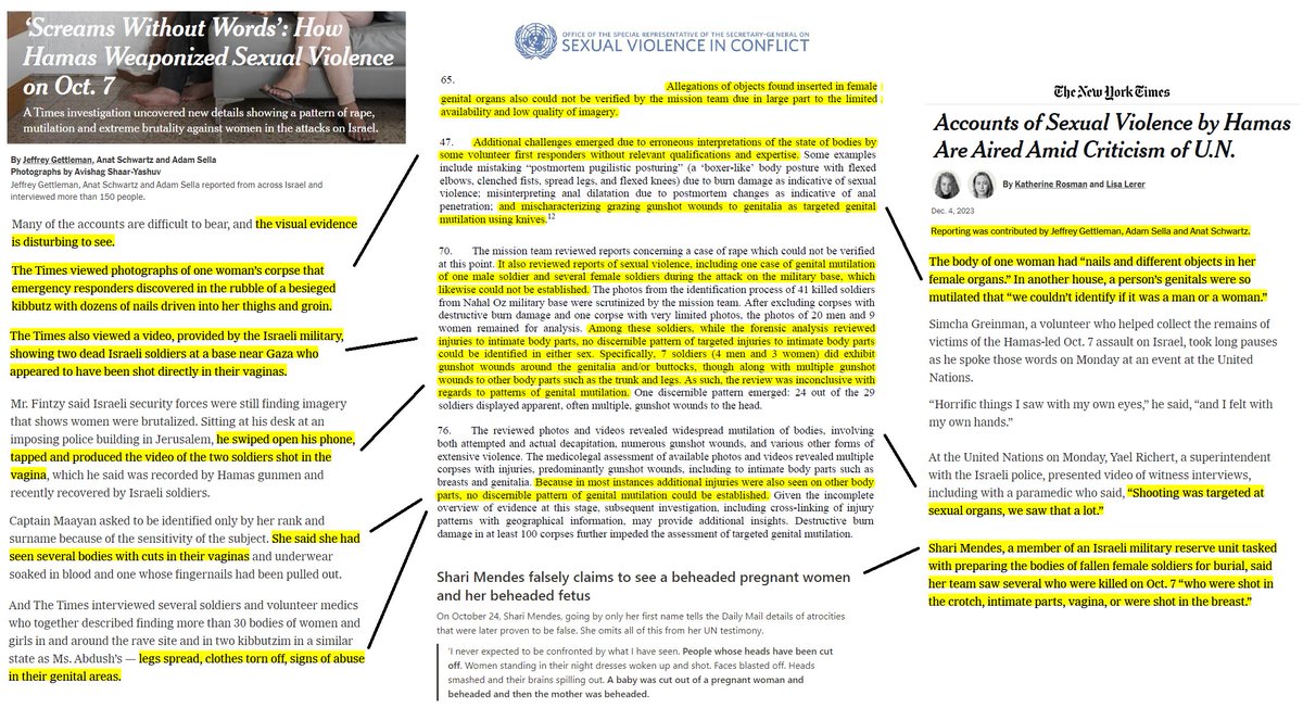 the UN's Human Rights Office, unlike Pramila Patten's office, actually does have an investigatory mandate and abilities, and this is their conclusion from their investigation: The NYT, AP, Reuters, Guardian all lied. And even Patten had concluded the same: https://t.co/WAeH1vftD8