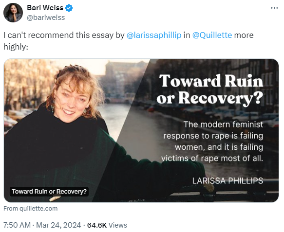 the word "rape" isn't used in that piece once. It's not even clear that the person who was the alleged perpetrator of one instance of unspecified sexual assault was a member of Hamas. And it wasn't ordered by anyone per her own allegation. They just lie endlessly without shame