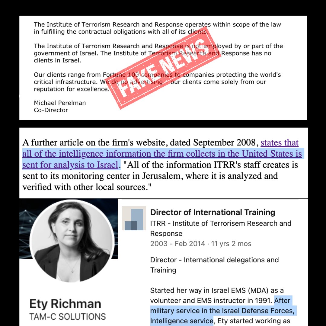 That intel network? TAM-C—part of the Institute of Terrorism Research & Response (ITRR). Co-founded by Aaron Richman (ex-Israeli police commander) & Mike Perelman (retired NYPD officer). TAM-C claims 24/7 intelligence via “Israeli & American experts" https://t.co/qFEmlQ6LO2