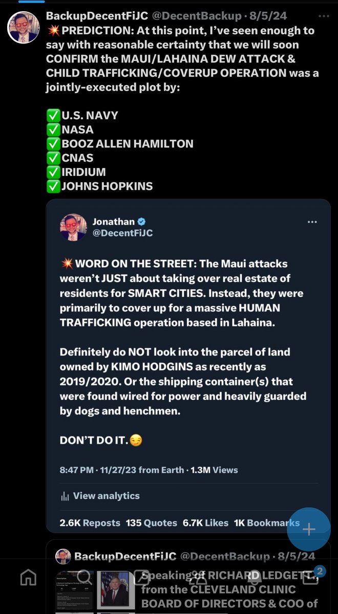 The longest-running and most technically sophisticated campaign originates from the political left, centered on Jim Stewartson (@jimstewartson), a Los Angeles-based figure with approximately 147,000 followers on X. Stewartson's core narrative — that Lt. Gen. Flynn created and controls QAnon as a deliberate psychological operation — has been sustained for more than four years.
