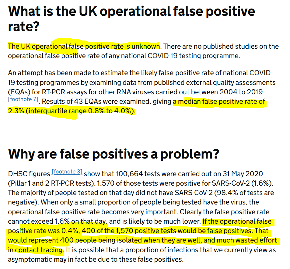 Of course the biggest fraud of all, and the one which the entire simulation depended on, and on which any new simulation will also depend, was the use of a test protocol, PCR, which was unfit for the purpose for which it was used. A test protocol which, as per its creator, can find pretty much anything in anyone, if done well. A test capable of finding tiny fragments of virus which are far too small to cause symptomatic illness, and far too small to make transmission to others a possibility. A test incapable of determining if the host is carrying live virus. A test which could deliver significant numbers of false positives and negatives. (False positives being a particular problem if, as mentioned below, decisions on isolation and contact tracing are being made on their basis). But a test whose sensitivity could be dialled up or down to show a sudden spike or dip in "cases" to meet the political requirements of the day. But the whole "testdemic" aspect is so important, it probably deserves a thread all of its own. One for another day... 11/10