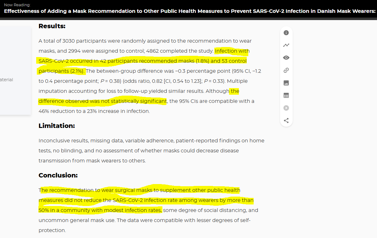 Item 4 - Mask Ineffectiveness In July 2020 there was a sudden turnaround in recommendations for mask wearing amongst the general population. Prior to this date, there had been a consensus that this was neither necessary nor desirable. But suddenly that all changed. The science hadn't changed, there was a randomly controlled trial conducted in Denmark in April/May 2020 which found no statistically significant difference in infections between mask-wearing and non-mask wearing groups. And subsequent studies reviewed by the Cochrane Library found the same. But what had changed was "political lobbying" with the WHO to change their guidance on masks, as the BBC revealed in a rare outbreak of COVID investigative journalism by them (youtube link below). Denmark masks study: https://www.acpjournals.org/doi/10.7326/m20-6817 BBC Newsnight clip: https://www.youtube.com/watch?v=XnRqUMxjvR4 5/10