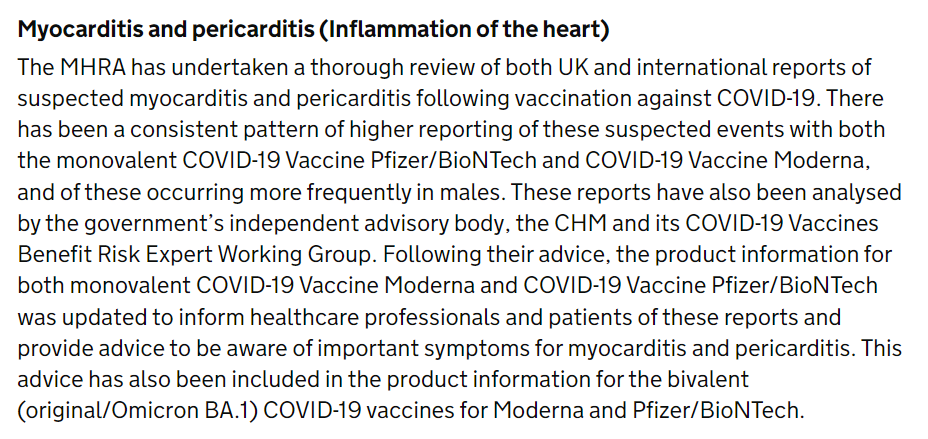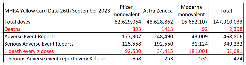 Item 7 Vaccine adverse effects We were assured, repeatedly, from the moment the novel COVID injectables were released, that they were "safe and effective". However the evidence that they were not quickly mounted. As early as March 2020, the Astra Zeneca vaccine was suspended in Nordic countries following adverse effects in medical workers who received it. And the MHRA was forced to mention the risk of myocarditis and pericarditis particularly in young males from vaccination with the Pfizer and Moderna products. And a number of coroners reports directly blamed the COVID injectables as the cause of death in several cases. But the insistence always remained that these were just extremely rare cases. The lie was given to all of this by the MHRA's Yellow Card data. Yellow Card had, up until December 2021 at least, always been used as an "early warning system" to identify problems with medicines. From the beginning of the tollout in December 2020 the MHRA received an absolute deluge of Yellow Card reports from recipients of the injectables who had suffered adverse effects immediately afterwards, as well as medical personnel reporting these symptoms on behalf of the injured and deceased. While not every reported injury may have been directly caused by the vaccine, we also know that Yellow Cards received by the MHRA only constitute a small fraction of the adverse effects actually experienced (they previously estimated that only 10% of serious effects were reported). By September 2023 it was clear from the data that there was an enormous issue with the safety of the vaccines. Serious adverse events were being reported to the MHRA at a rate of 1 for every 424 doses, and deaths running at 1 for every 60,000 doses (and bear in mind most people had at least 2 doses) but to this day there has been no acknowledgement or independent investigation. AZ injuries story: https://www.reuters.com/article/us-health-coronavirus-norway-idUSKBN2B50GZ/ The MHRA data has been largely archived in obscure locations on the internet now so is hard to link to, but I have all of the receipts if anyone is interested. 8/10