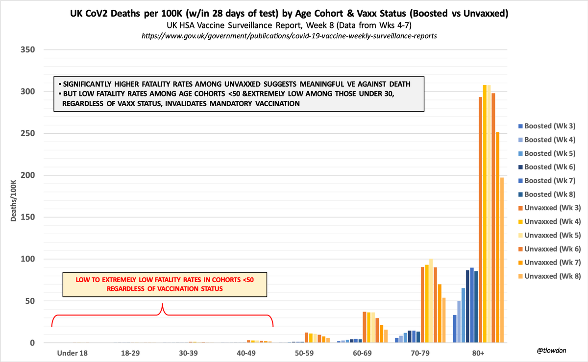 Note: UK HSA warns against using this data to estimate VE. I'm not estimating VE, though. I'm observing trends & highlighting differences in the various rates between the vaxxed & unvaxxed - and using these to point out the invalidity of vaxx mandates, not of vaccines themselves.