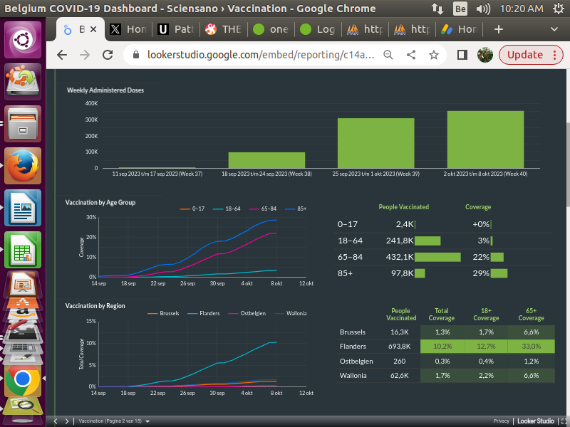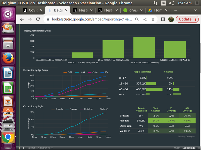 De #Covid "#revaccinaties" in België hebben gepiekt in de week van 2 oktober. Op 2023-10-15 heeft 90% van de Belgische bevolking (ongeveer 10.4 miljoen mensen) de "revaccinaties" booster niet genomen. Dat is momenteel 30% beter dan de vorige 60%: