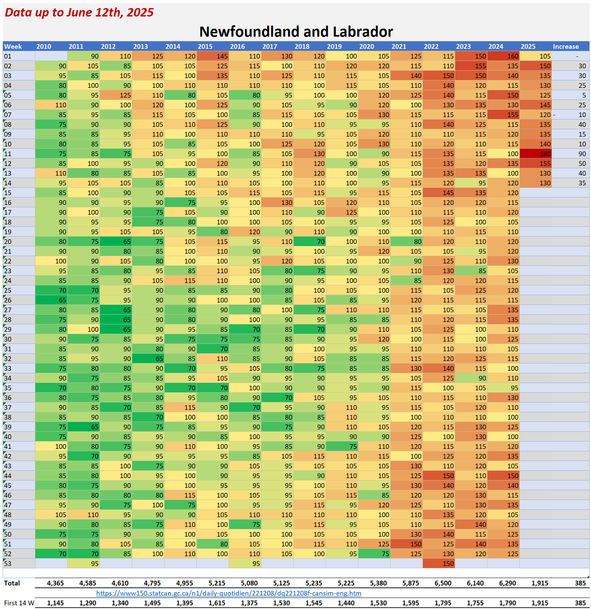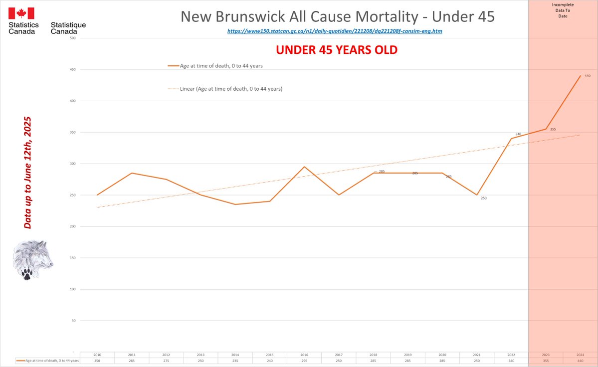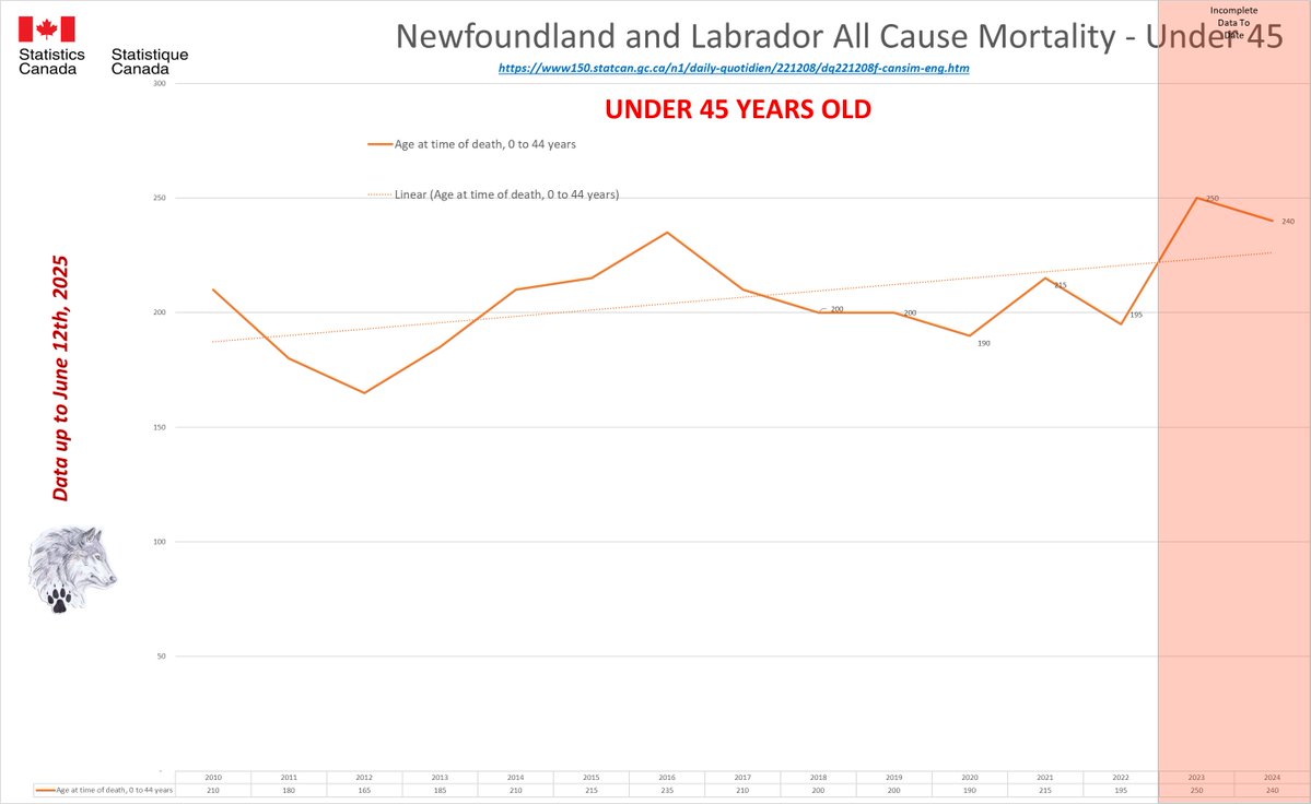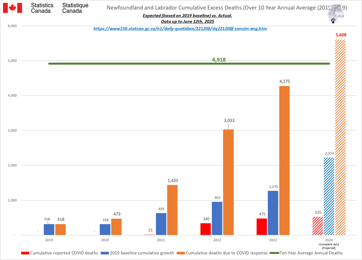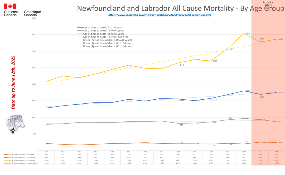 🚨ALL-CAUSE MORTALITY DATA – NEWFOUNDLAND AND LABRADOR Stats Canada Data as of June 12, 2025 https://dksdata.com/ExcessDeaths#CanadaExcessDeaths https://dksdata.com/Excess/AllCauseCanadaJun2025.pdf (full report 96 pages) https://dksdata.com/Excess/CompareJan25-June25-ByCause.pdf (large file 2,308 pages) https://dksdata.com/Excess/CompareJan25-June25-ByAge.pdf (large file 1,969 pages) 10/15