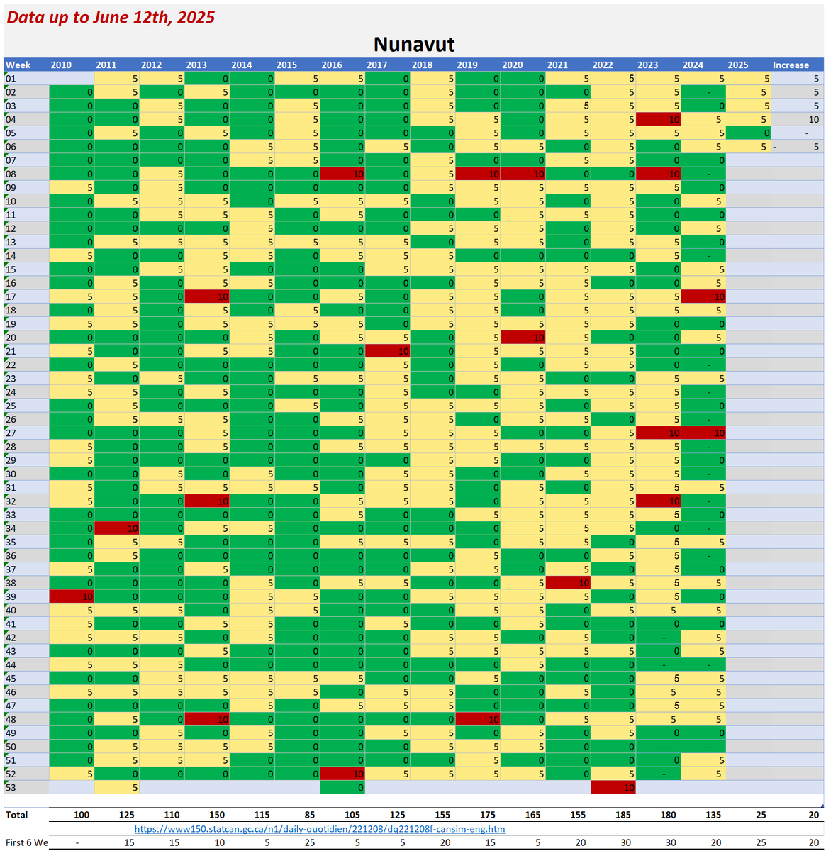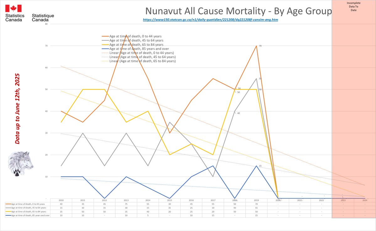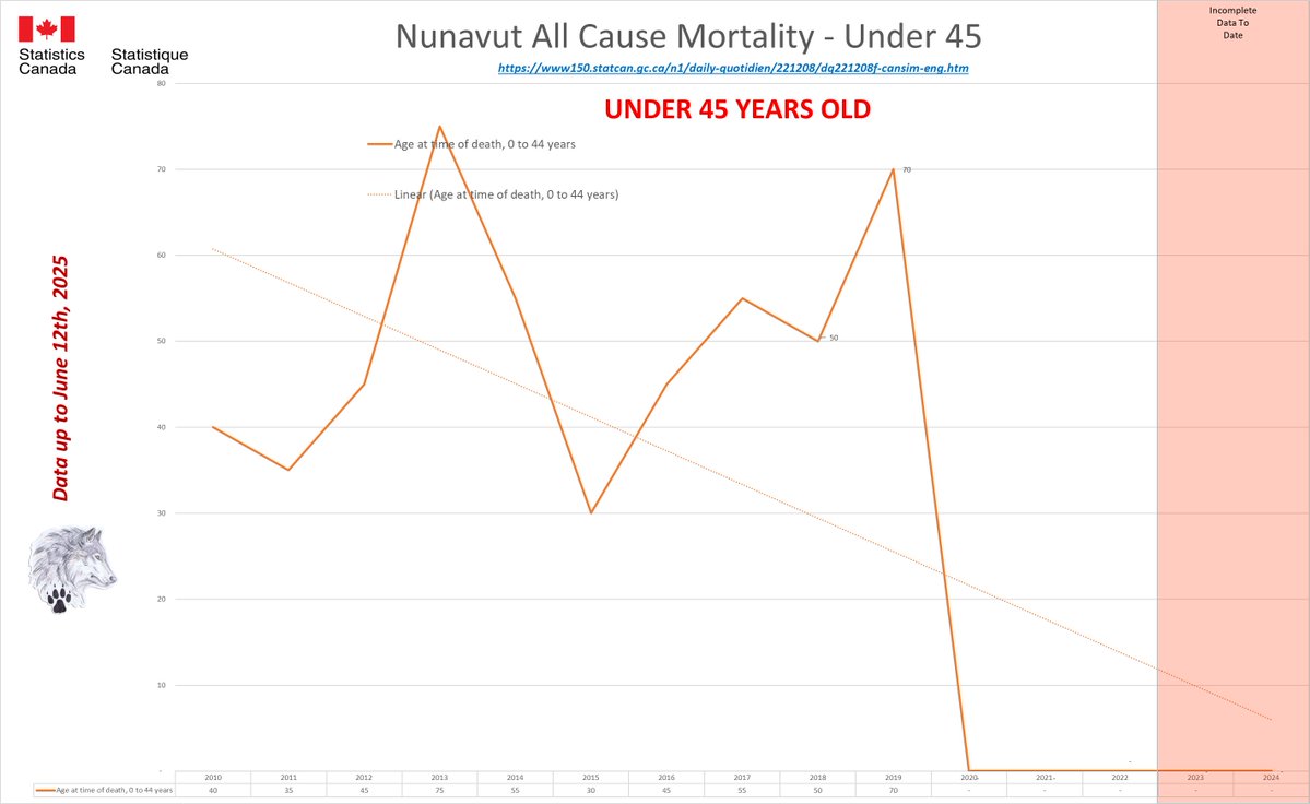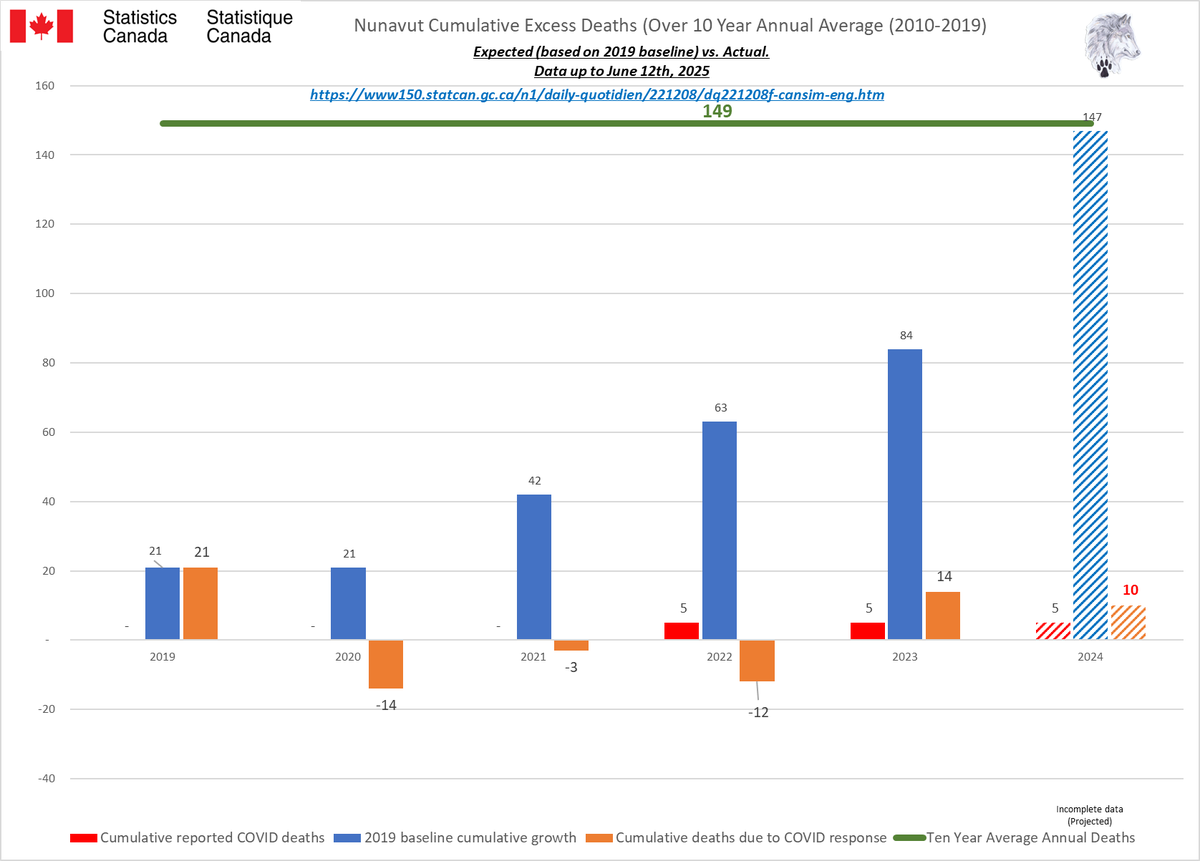 🚨ALL-CAUSE MORTALITY DATA – NUNAVUT Stats Canada Data as of June 12, 2025 https://dksdata.com/ExcessDeaths#CanadaExcessDeaths https://dksdata.com/Excess/AllCauseCanadaJun2025.pdf (full report 96 pages) https://dksdata.com/Excess/CompareJan25-June25-ByCause.pdf (large file 2,308 pages) https://dksdata.com/Excess/CompareJan25-June25-ByAge.pdf (large file 1,969 pages) 13/15