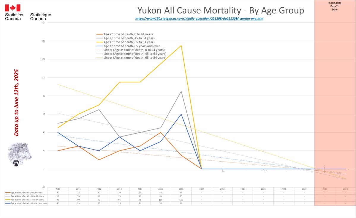 🚨ALL-CAUSE MORTALITY DATA – YUKON Stats Canada Data as of June 12, 2025 https://dksdata.com/ExcessDeaths#CanadaExcessDeaths https://dksdata.com/Excess/AllCauseCanadaJun2025.pdf (full report 96 pages) https://dksdata.com/Excess/CompareJan25-June25-ByCause.pdf (large file 2,308 pages) https://dksdata.com/Excess/CompareJan25-June25-ByAge.pdf (large file 1,969 pages) 15/15