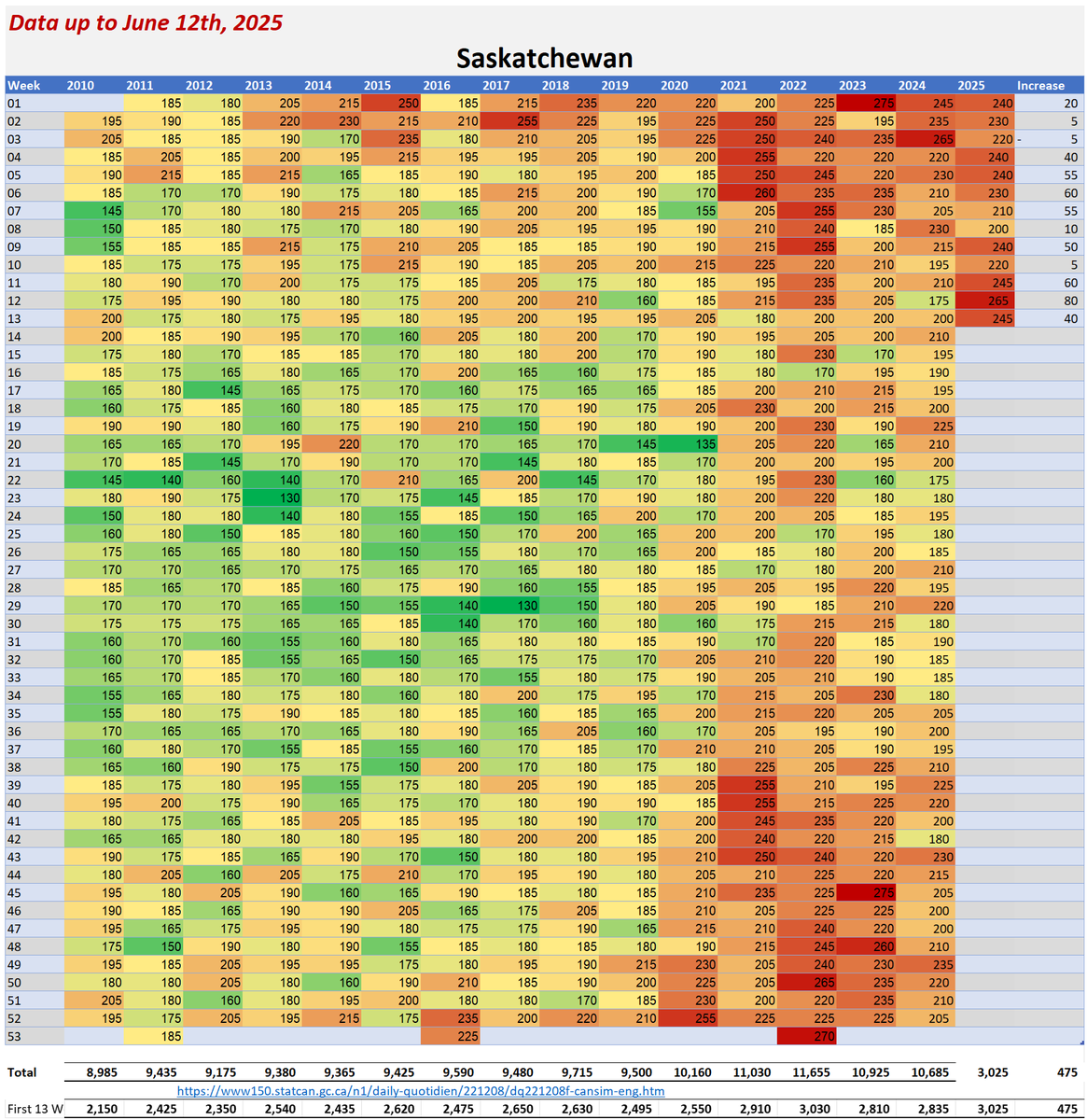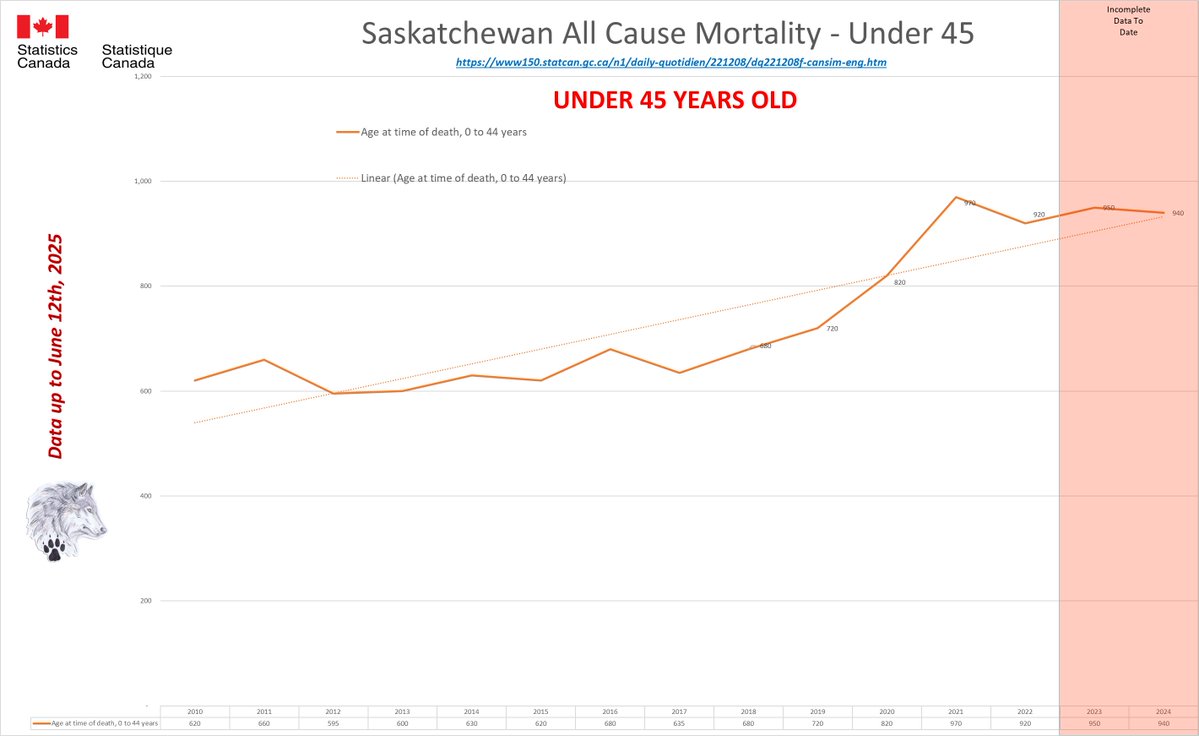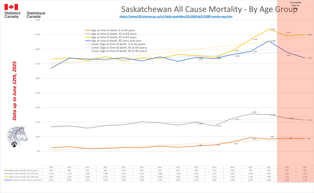 🚨ALL-CAUSE MORTALITY DATA – SASKATCHEWAN Stats Canada Data as of June 12, 2025 https://dksdata.com/ExcessDeaths#CanadaExcessDeaths https://dksdata.com/Excess/AllCauseCanadaJun2025.pdf (full report 96 pages) https://dksdata.com/Excess/CompareJan25-June25-ByCause.pdf (large file 2,308 pages) https://dksdata.com/Excess/CompareJan25-June25-ByAge.pdf (large file 1,969 pages) 5/15