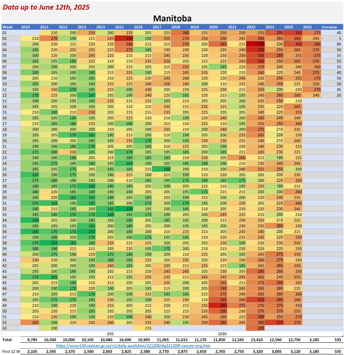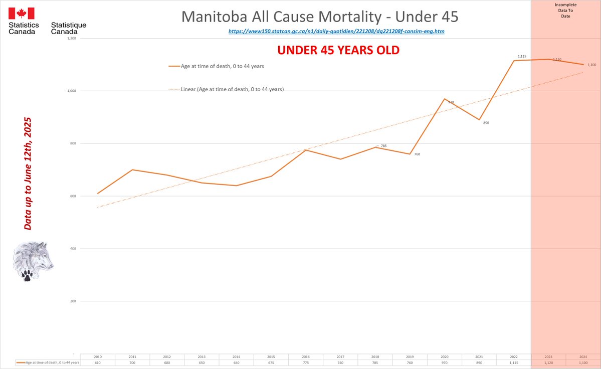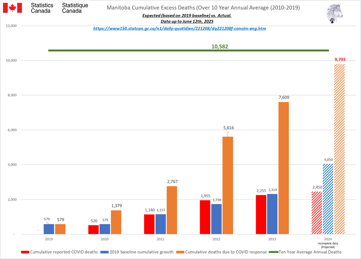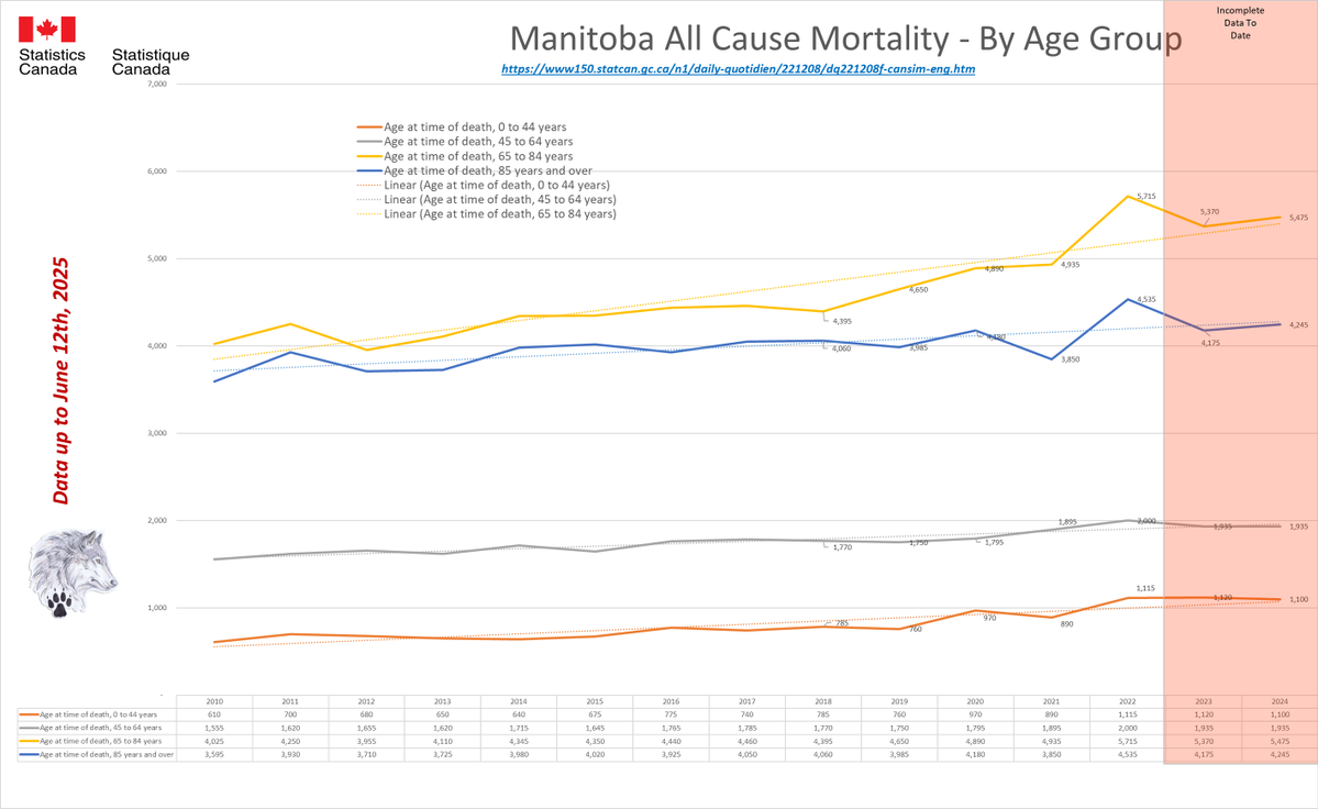 🚨ALL-CAUSE MORTALITY DATA – MANITOBA Stats Canada Data as of June 12, 2025 https://dksdata.com/ExcessDeaths#CanadaExcessDeaths https://dksdata.com/Excess/AllCauseCanadaJun2025.pdf (full report 96 pages) https://dksdata.com/Excess/CompareJan25-June25-ByCause.pdf (large file 2,308 pages) https://dksdata.com/Excess/CompareJan25-June25-ByAge.pdf (large file 1,969 pages) 6/15