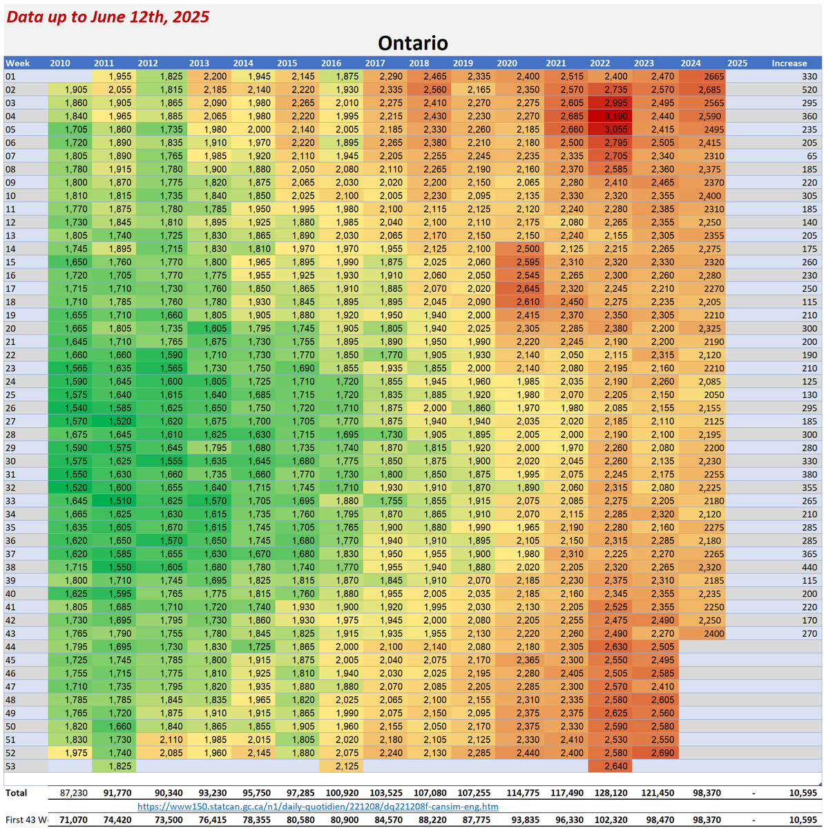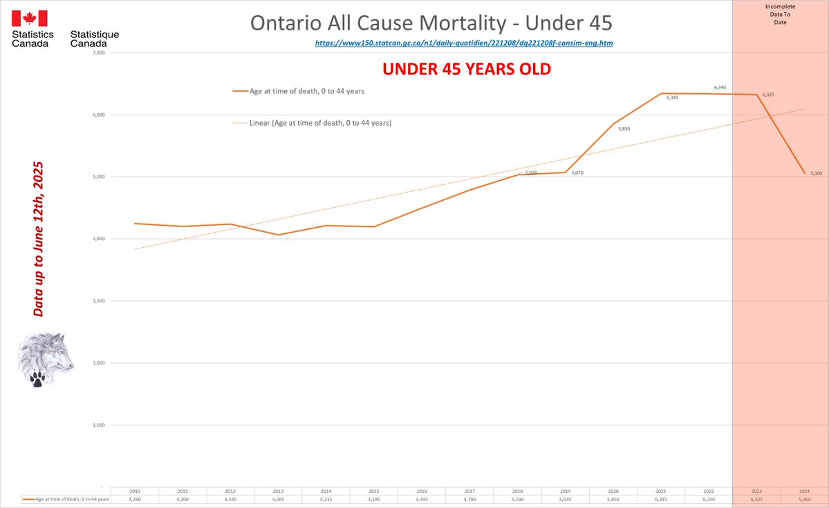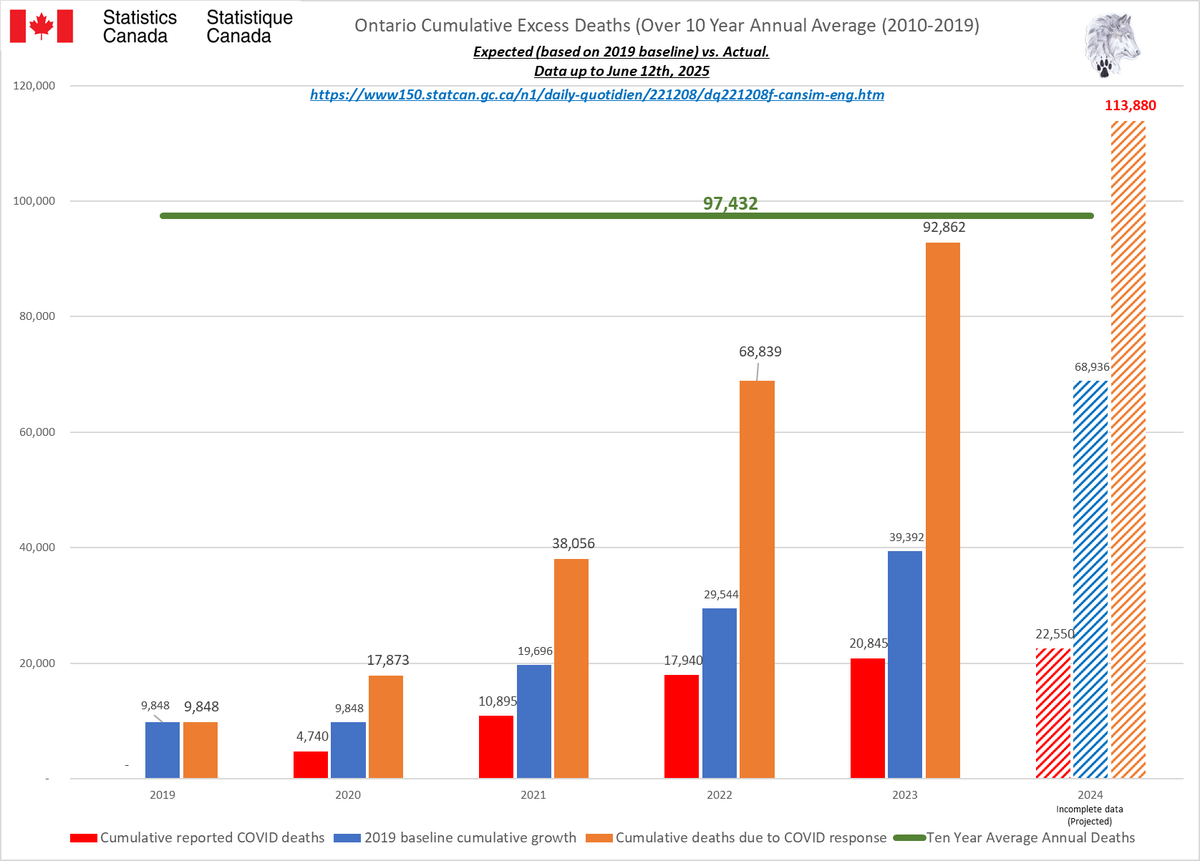🚨ALL-CAUSE MORTALITY DATA – ONTARIO Stats Canada Data as of June 12, 2025 https://dksdata.com/ExcessDeaths#CanadaExcessDeaths https://dksdata.com/Excess/AllCauseCanadaJun2025.pdf (full report 96 pages) https://dksdata.com/Excess/CompareJan25-June25-ByCause.pdf (large file 2,308 pages) https://dksdata.com/Excess/CompareJan25-June25-ByAge.pdf (large file 1,969 pages) 7/15