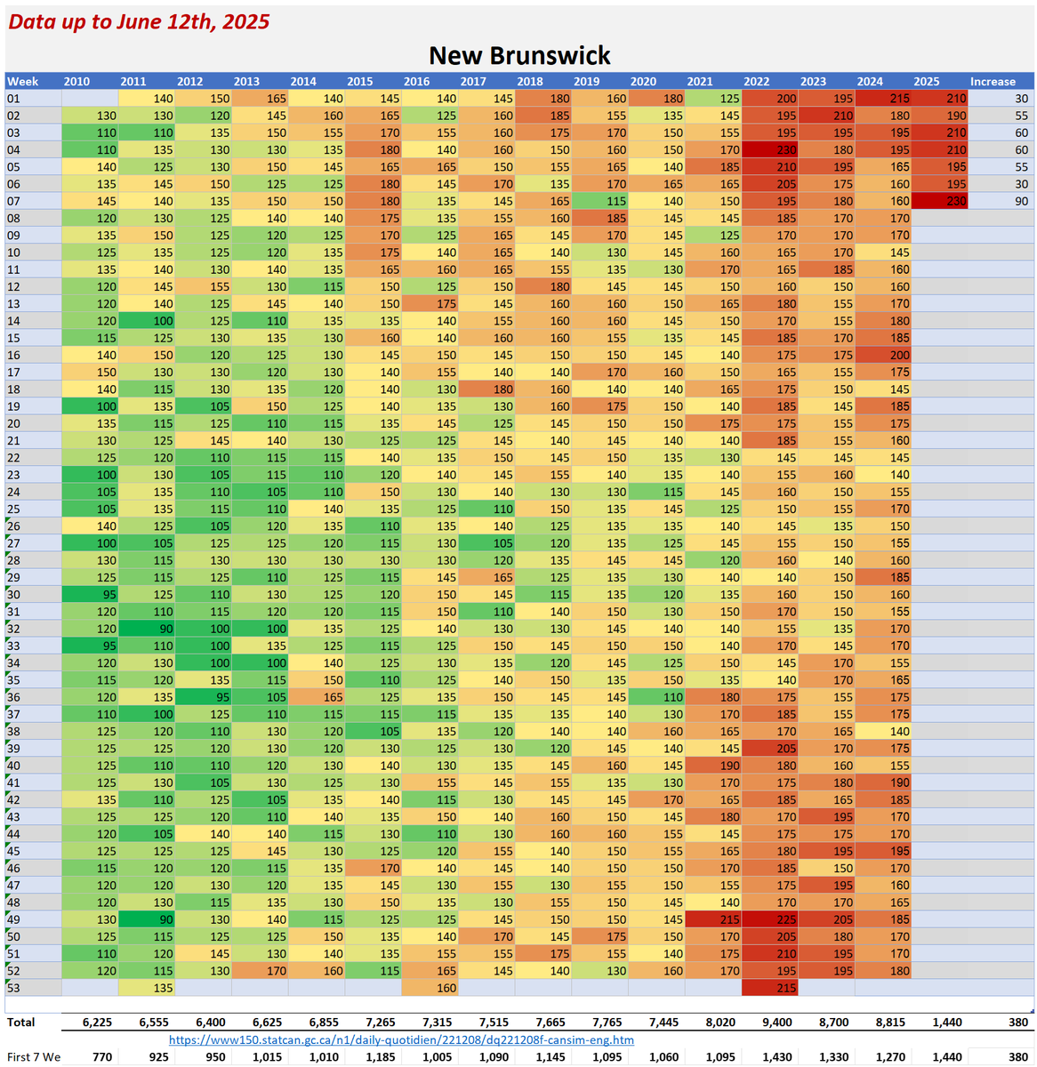 🚨ALL-CAUSE MORTALITY DATA – NEW BRUNSWICK Stats Canada Data as of June 12, 2025 https://dksdata.com/ExcessDeaths#CanadaExcessDeaths https://dksdata.com/Excess/AllCauseCanadaJun2025.pdf (full report 96 pages) https://dksdata.com/Excess/CompareJan25-June25-ByCause.pdf (large file 2,308 pages) https://dksdata.com/Excess/CompareJan25-June25-ByAge.pdf (large file 1,969 pages) 9/15