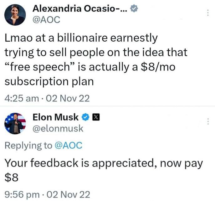🔥Top 7 FUNNIEST Elon Musk Comebacks 🧵A thread 🧵 1. AOC and her obsession https://t.co/3c1m08hYJr
